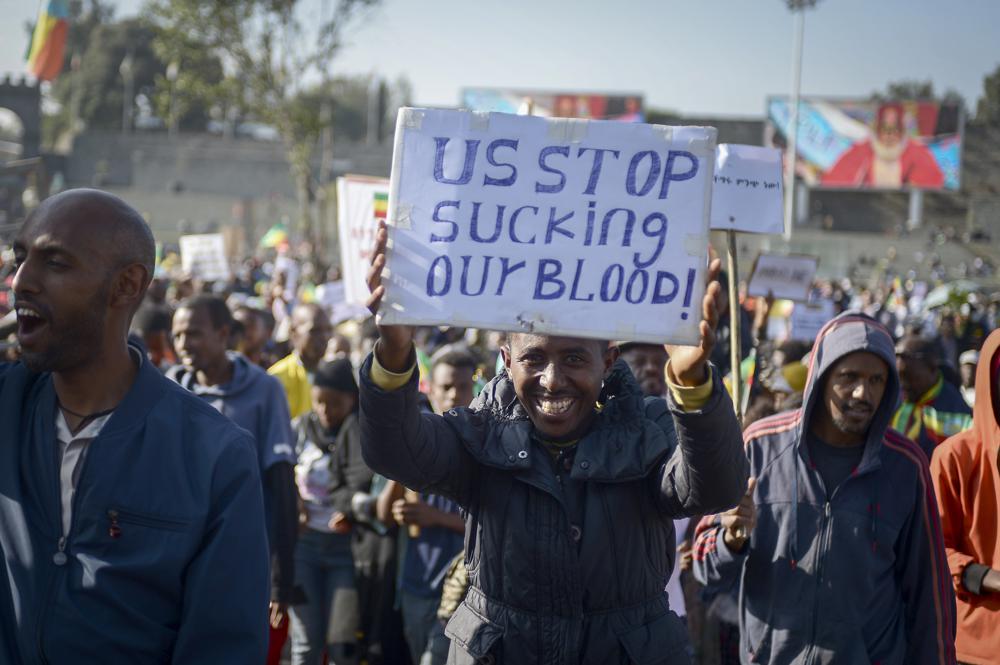 İstanbul, 23 Ekim 22 (TAK): Etiyopya'da binlerce kişi ülkenin egemenliğine "saygı göstermediği" gerekçesiyle Batılı güçleri ve uluslararası örgütleri protesto etti.