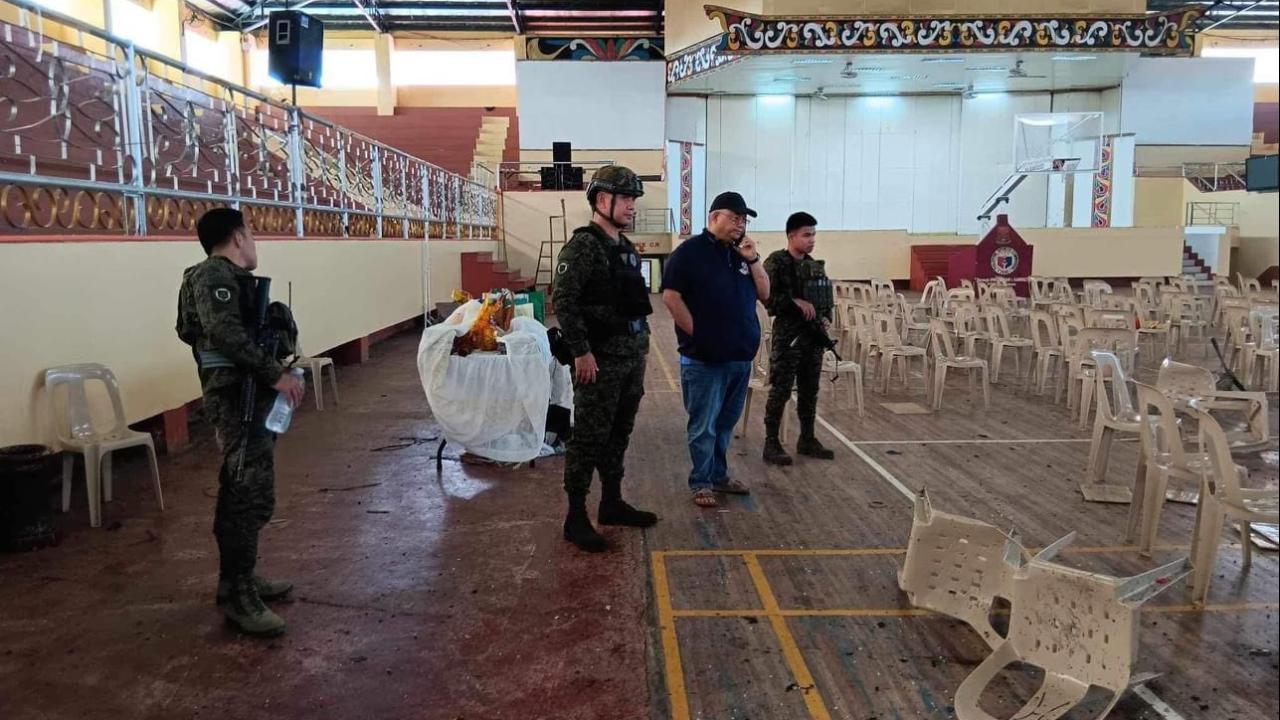toplanan Hristiyanların bulunduğu Mindanao Devlet Üniversitesi'ndeki spor