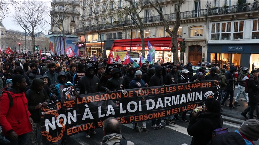 Paris, 23 Aralık 23 (TAK): Fransa'da hükümetin aşırı sağın oylarıyla Parlamentodan geçirdiği göç yasa tasarısına karşı gösteri düzenlendi.