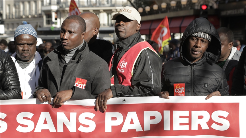 Paris, 7 Kasım 23 (TAK): Fransa'da, Senato'nun karşısında, göçmen işçilere oturum belgesi verilmesi talebiyle protesto eylemi gerçekleştirildi.