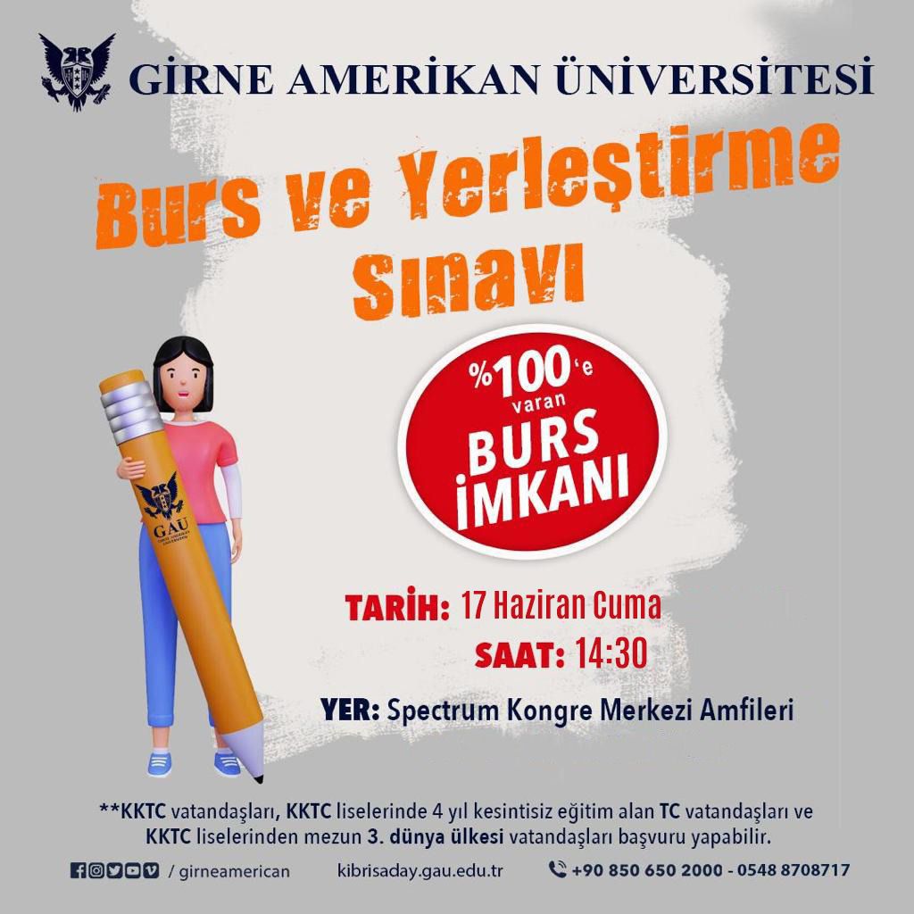 Lefkoşa, 15 Haziran 22 (TAK) Girne Amerikan Üniversitesi (GAÜ), burs sınavını kaçıranlar için 17 Haziran’da yeni bir burs sınavı yapacağını duyurdu.