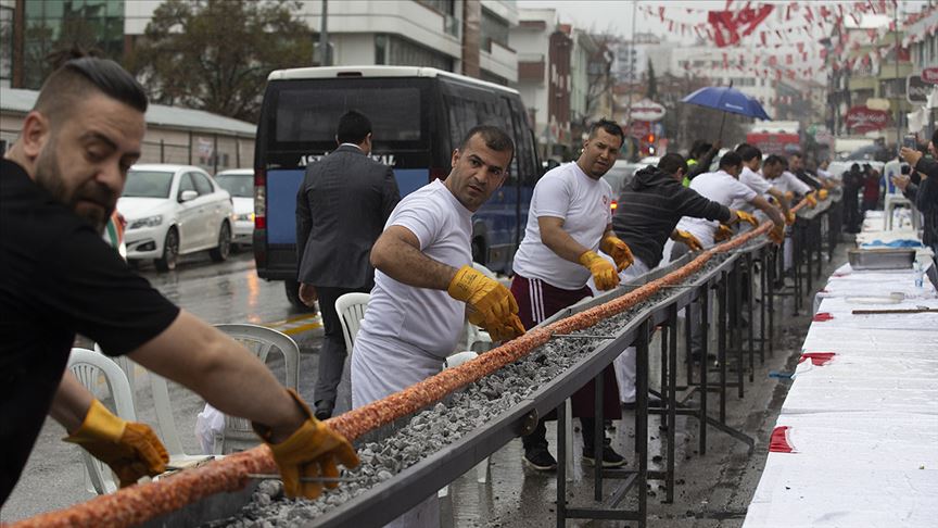 Gaziantep, 27 Ağustos 24 (TAK): GastroAntep Kültür Yolu Festivali kapsamında, 500 ustanın 2,5 kilometre uzunluğunda "dünyanın en uzun kebabı"nı hazırlayarak rekor denemesi yapacağı bildirildi.