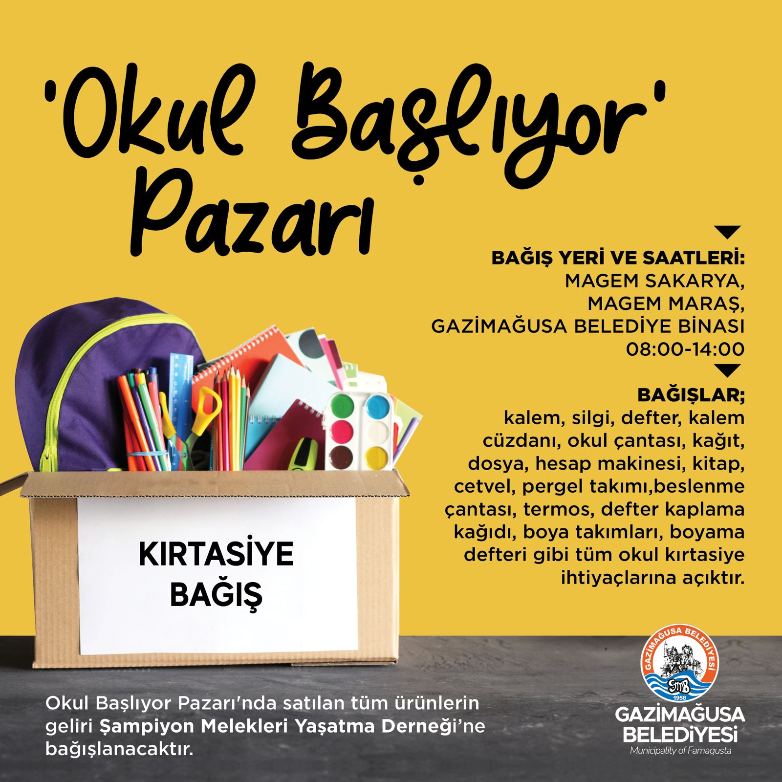 Pazarda yapılacak satışın geliri Şampiyon Melekleri Yaşatma Derneği'ne bağışlanacak