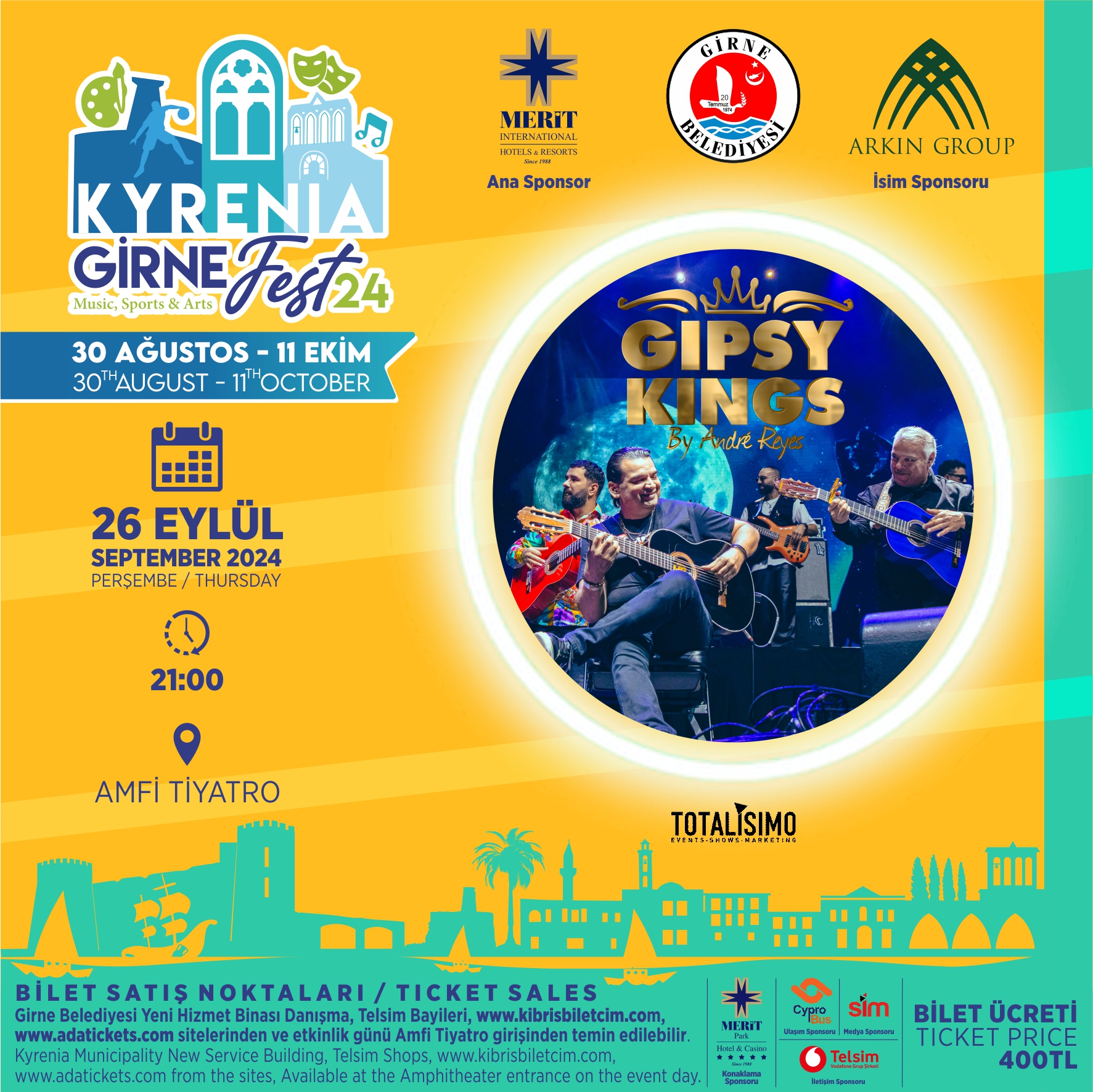 Lefkoşa, 25 Eylül 24 (TAK): Latin müzik grubu Gipsy Kings by Andre Reyes, yarın akşam Girne’de konser verecek.