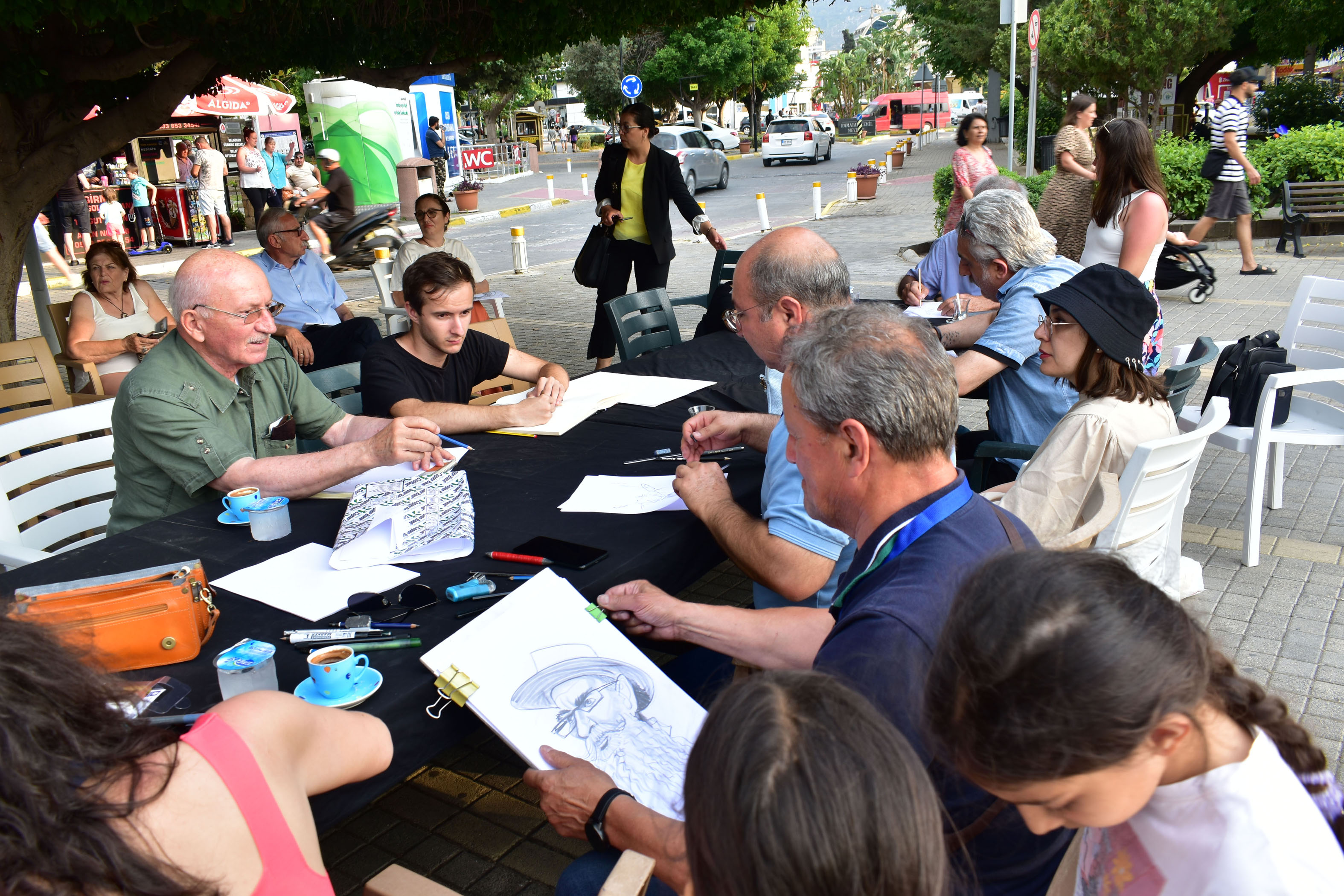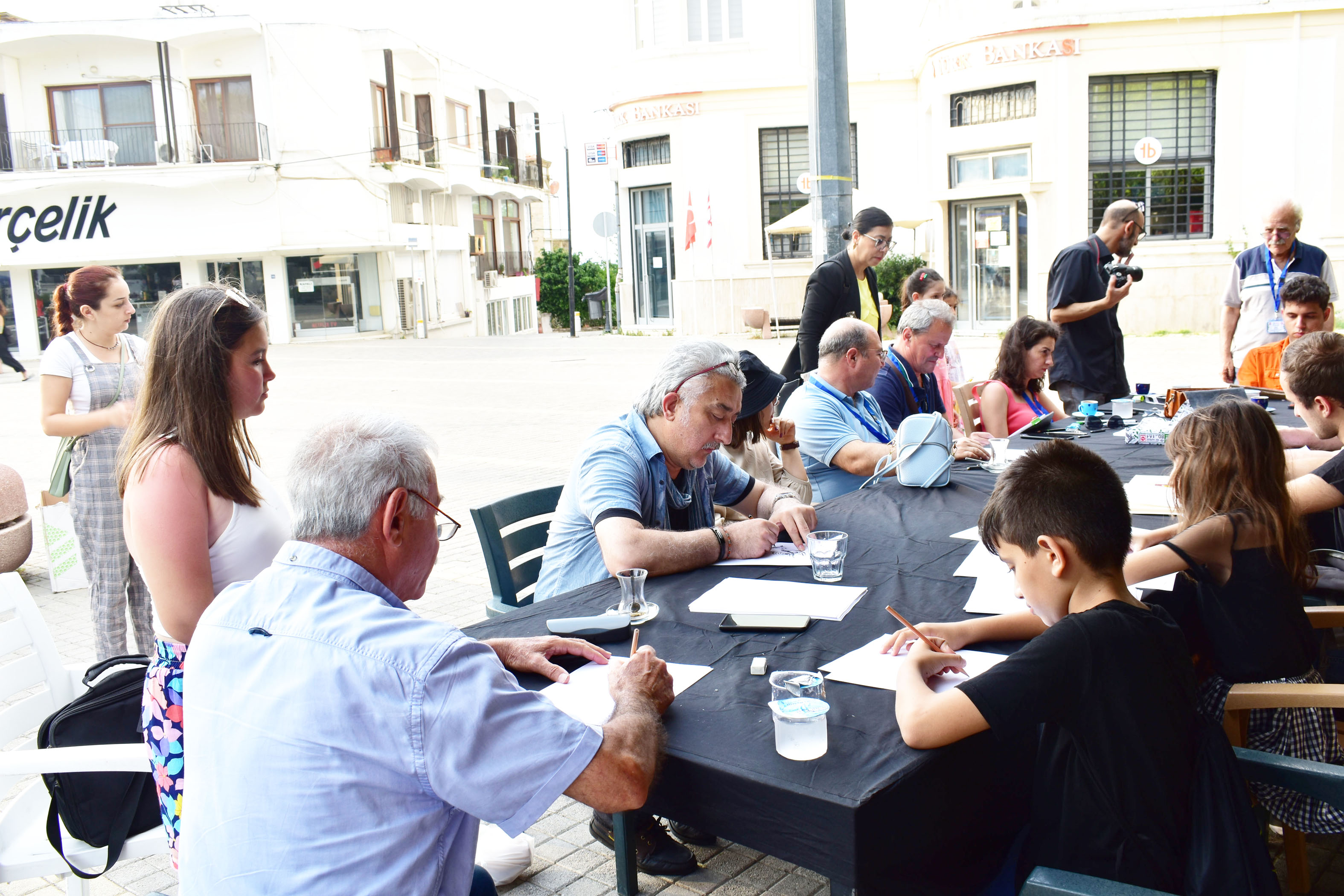Lefkoşa, 12 Haziran 22 (TAK): 21.Uluslararası Zeytin Festivali 2022 kapsamında düzenlenen “11. Uluslararası Karikatür Yarışması” için Girne’ye gelen misafir karikatürcüler Girne Ramadan Cemil Meydanı’nda portre karikatür çalışması yaptı.