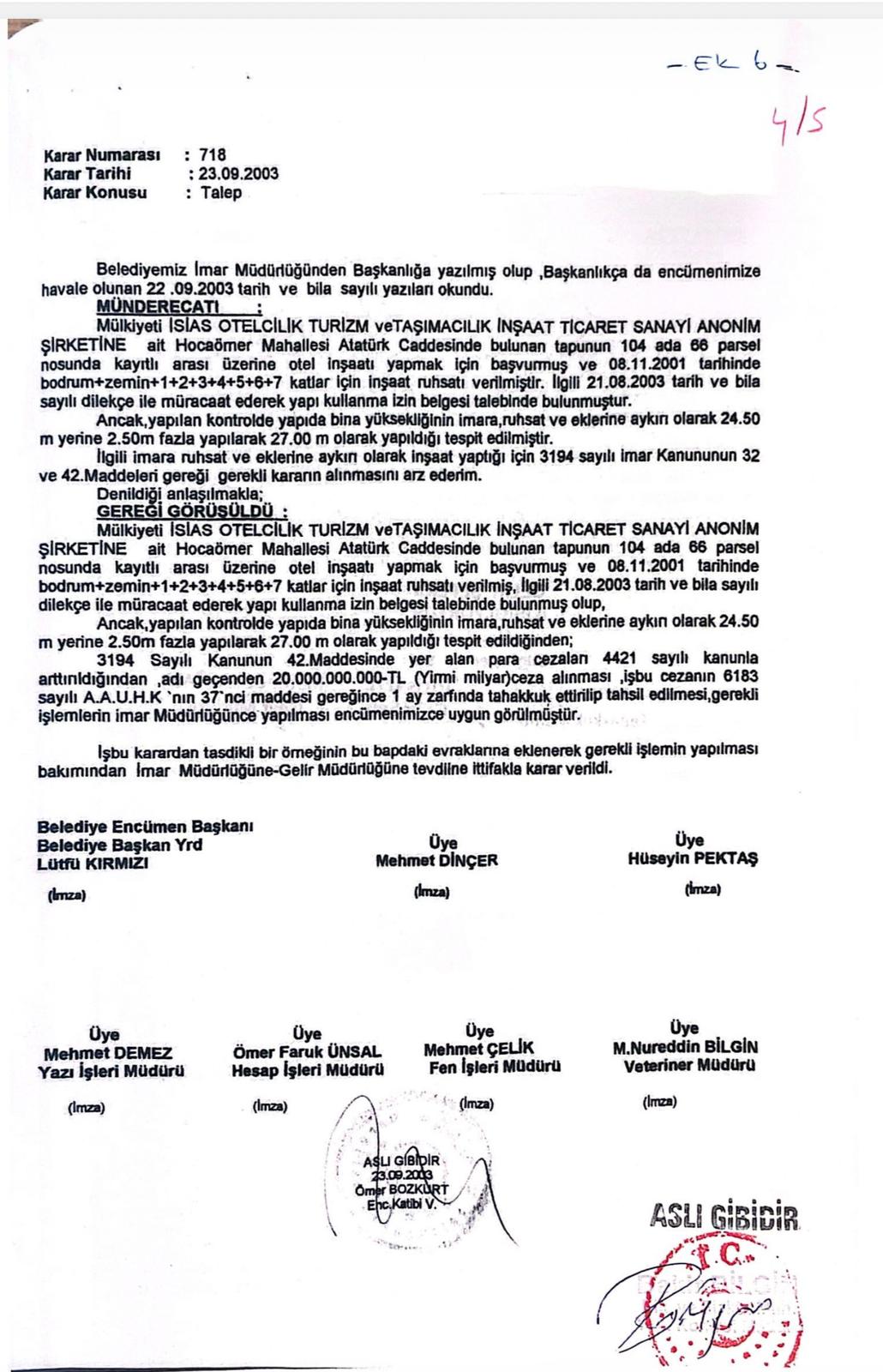 TAK’a konuşan Karakaya: “İsias Otel'e 20 yıl önce ‘ruhsata