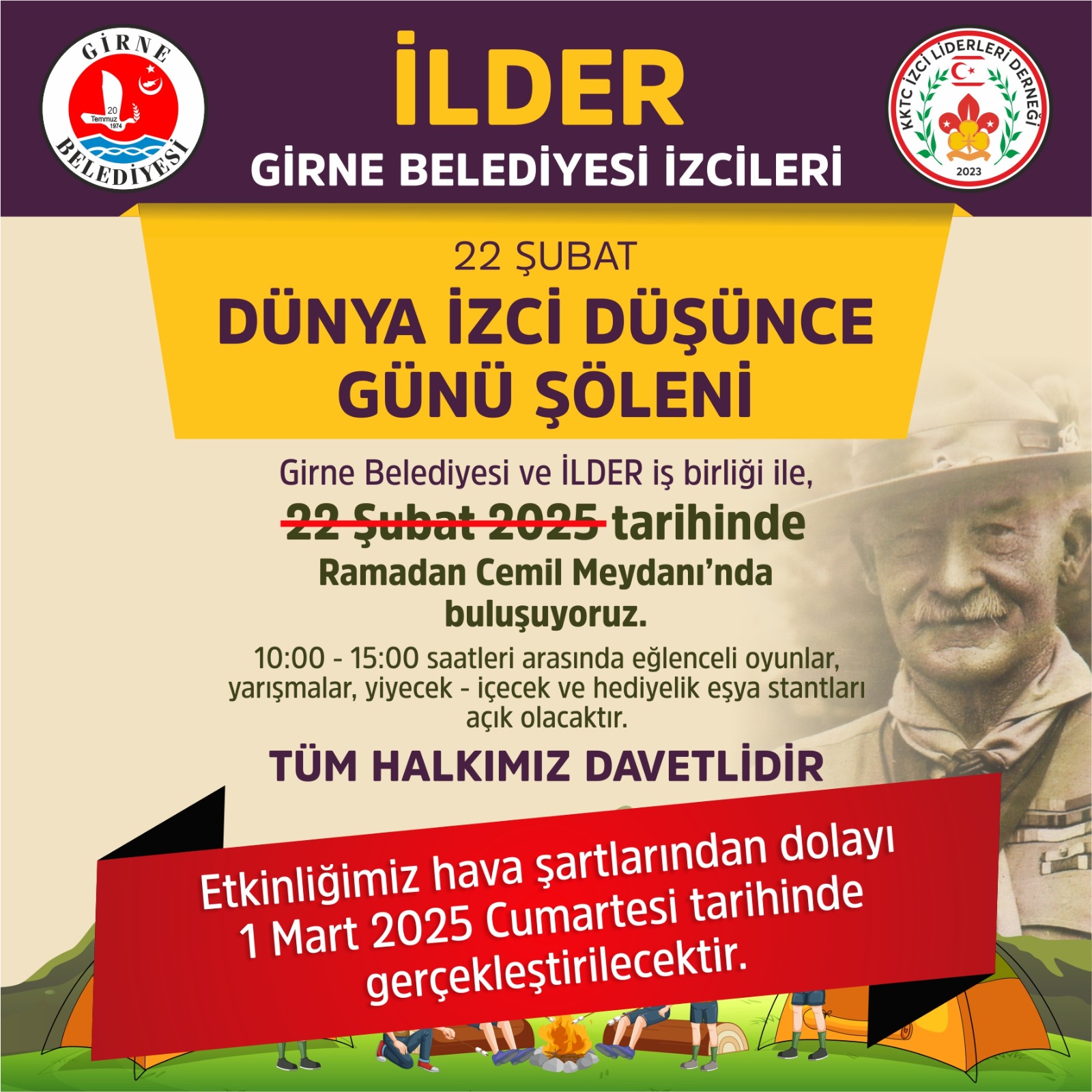 İzci Düşünce Günü’ kapsamındaki şölen, hava şartlarından dolayı 1 Mart’a
