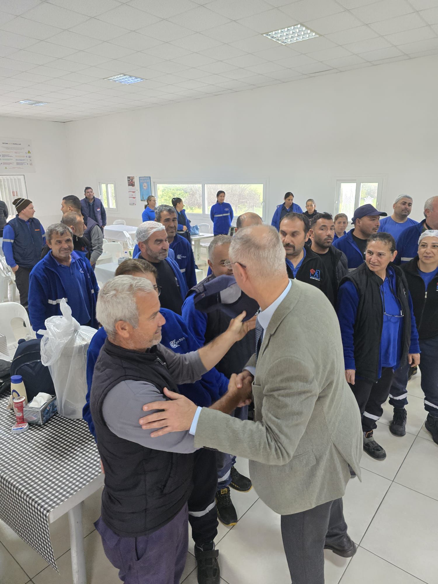 ​Lefkoşa, 20 Mart 26 (TAK): Çalışma ve Sosyal Güvenlik Bakanı Oğuzhan Hasipoğlu, geçtiğimiz günlerde uzlaşıyla sonuçlanan toplu iş sözleşmesi sürecinin ardından, Ektam Kıbrıs Ltd. tesislerini ziyaret ederek çalışanlarla bir araya geldi. Hasipoğlu, işçilerin bayramlarını kutladı.