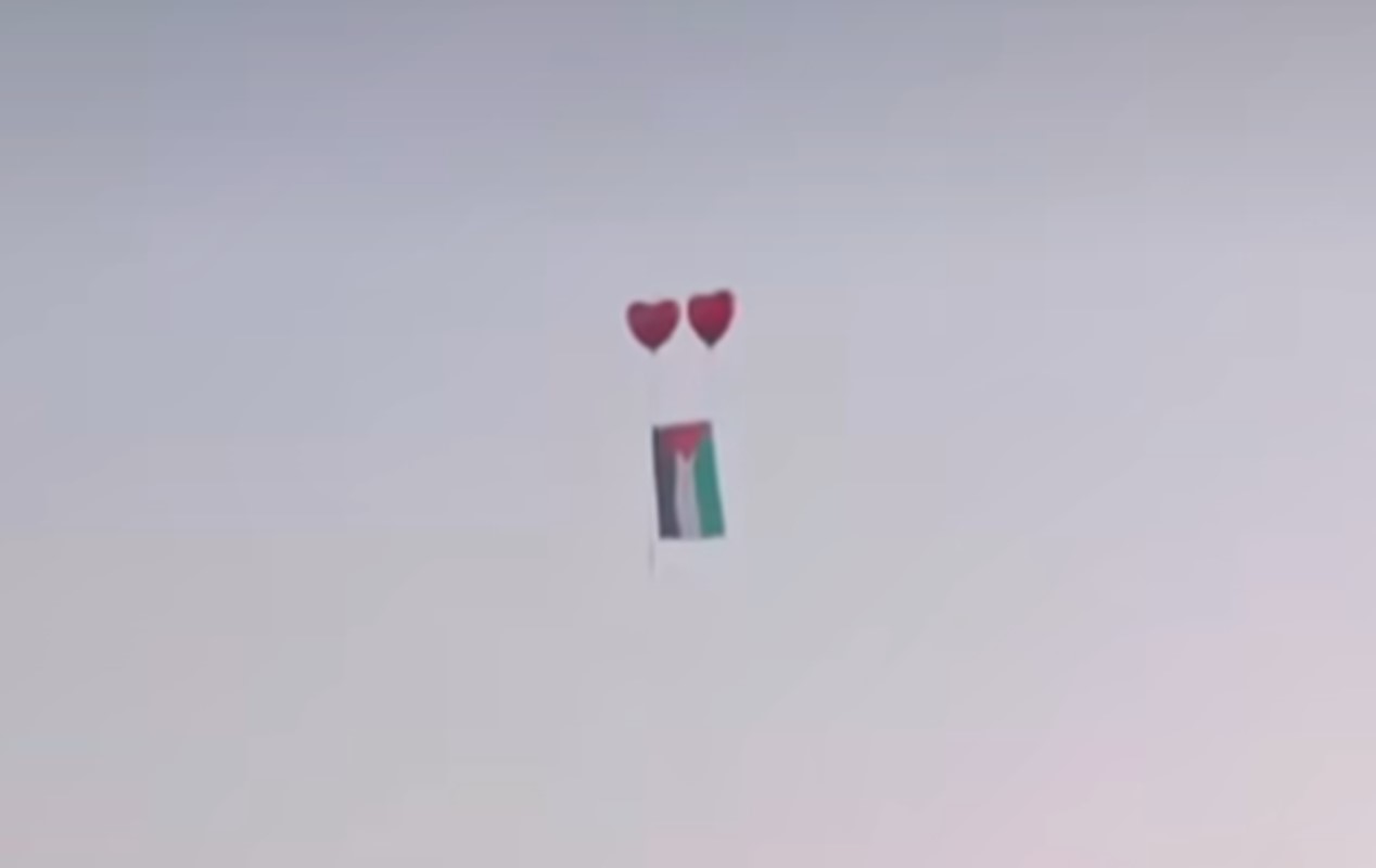 bağlanmış şekilde Filistin bayrağı uçuruldu.
