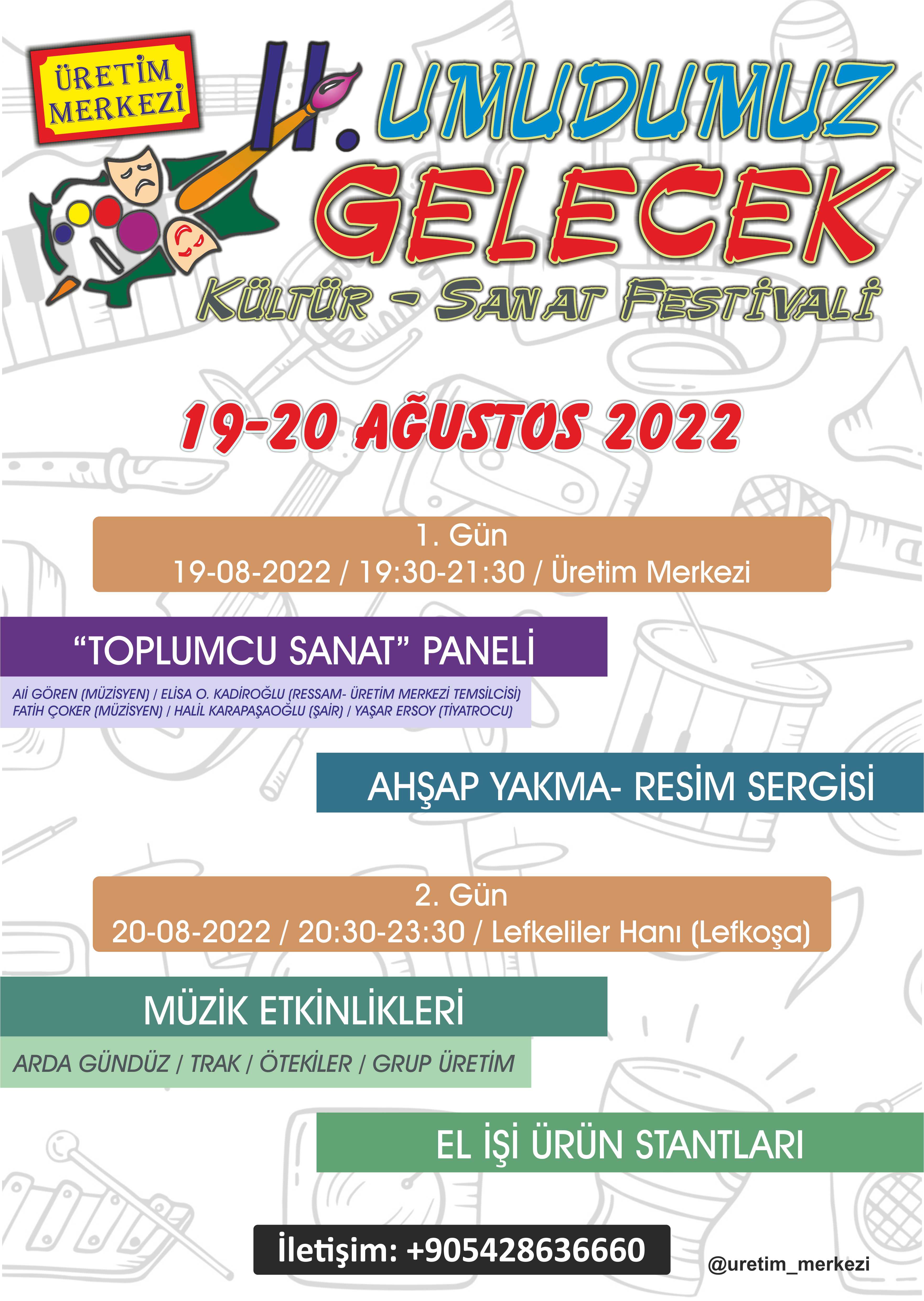 Lefkoşa, 16 Ağustos 22 (TAK): Üretim Sokağı Kültür Merkezi Derneği’nin düzenlediği II. Umudumuz Gelecek Festivali 19 ve 20 Ağustos'ta gerçekleştiriliyor.