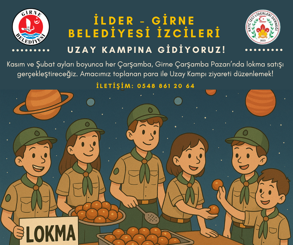 Lefkoşa, 10 Kasım 25 (TAK): Girne Belediyesi’ne bağlı İLDER- Girne Belediyesi İzcileri, uzay kampına katılım hedefiyle lokma satışı yapacak.