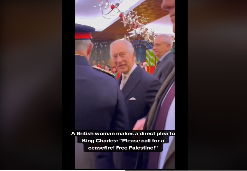 Londra, 8 Aralık 23 (TAK): İngiltere Kralı 3. Charles, başkent Londra'da Noel pazarını gezdiği esnada, Filistin destekçisi bir kadın kendisine seslenerek "Gazze'de ateşkes" çağrısında bulunmasını istedi.