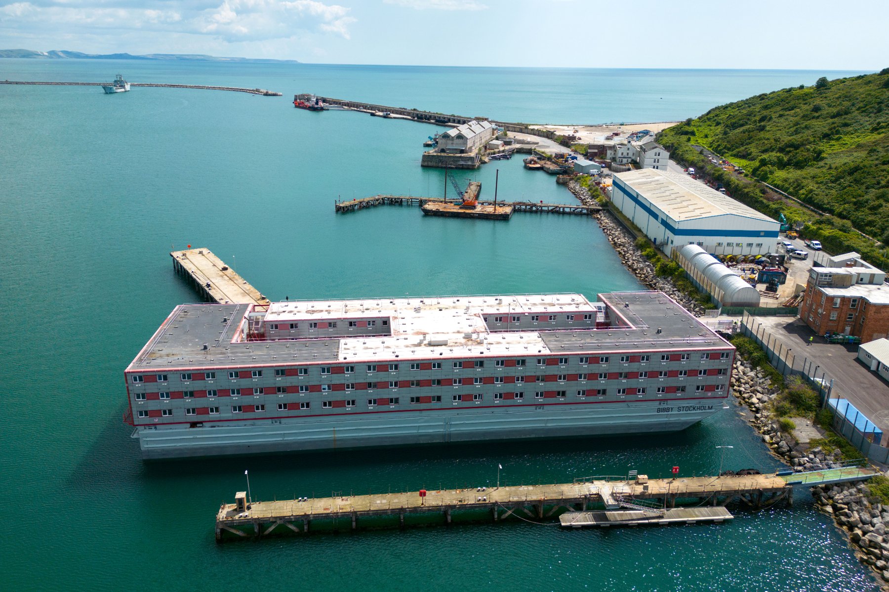 değişiklikler yapılan Bibby Stockholm adlı dev gemiye ilk mülteci grubu