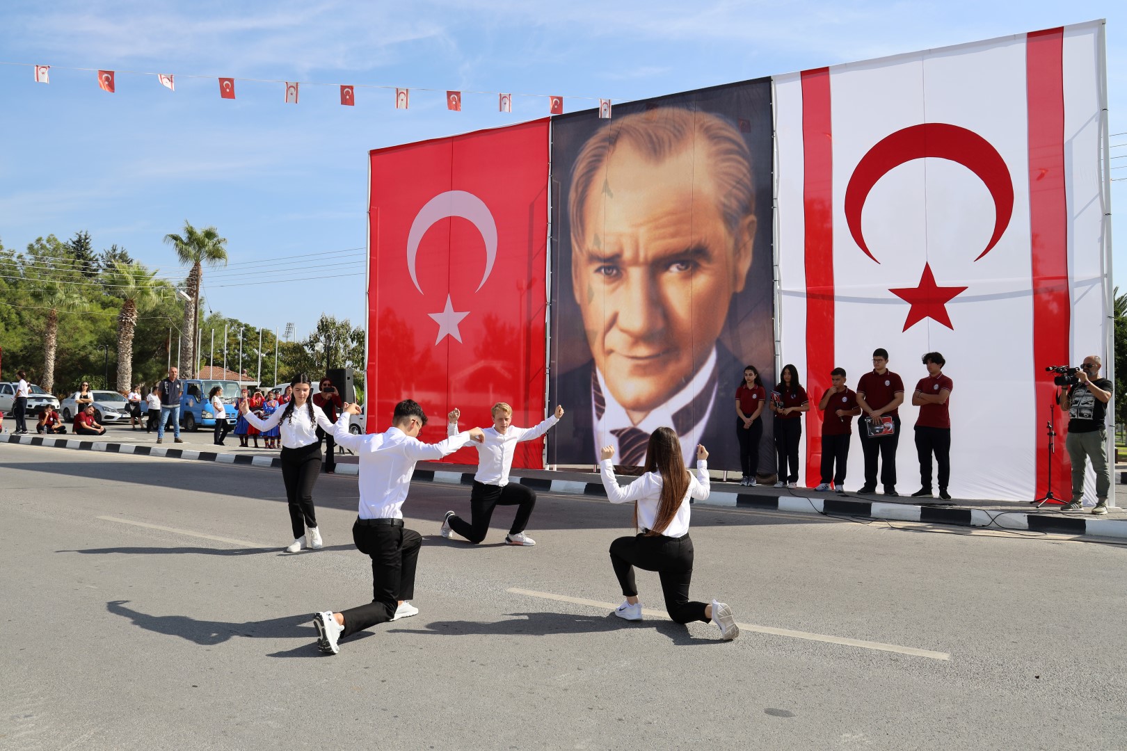 Lefkoşa, 29 Ekim 23 (TAK): Türkiye Cumhuriyeti’nin kuruluşunun 100’ncü yıl dönümü nedeniyle İskele’deki Atatürk Anıtı ve Ecevit Meydanı’nda etkinlikler düzenlendi.