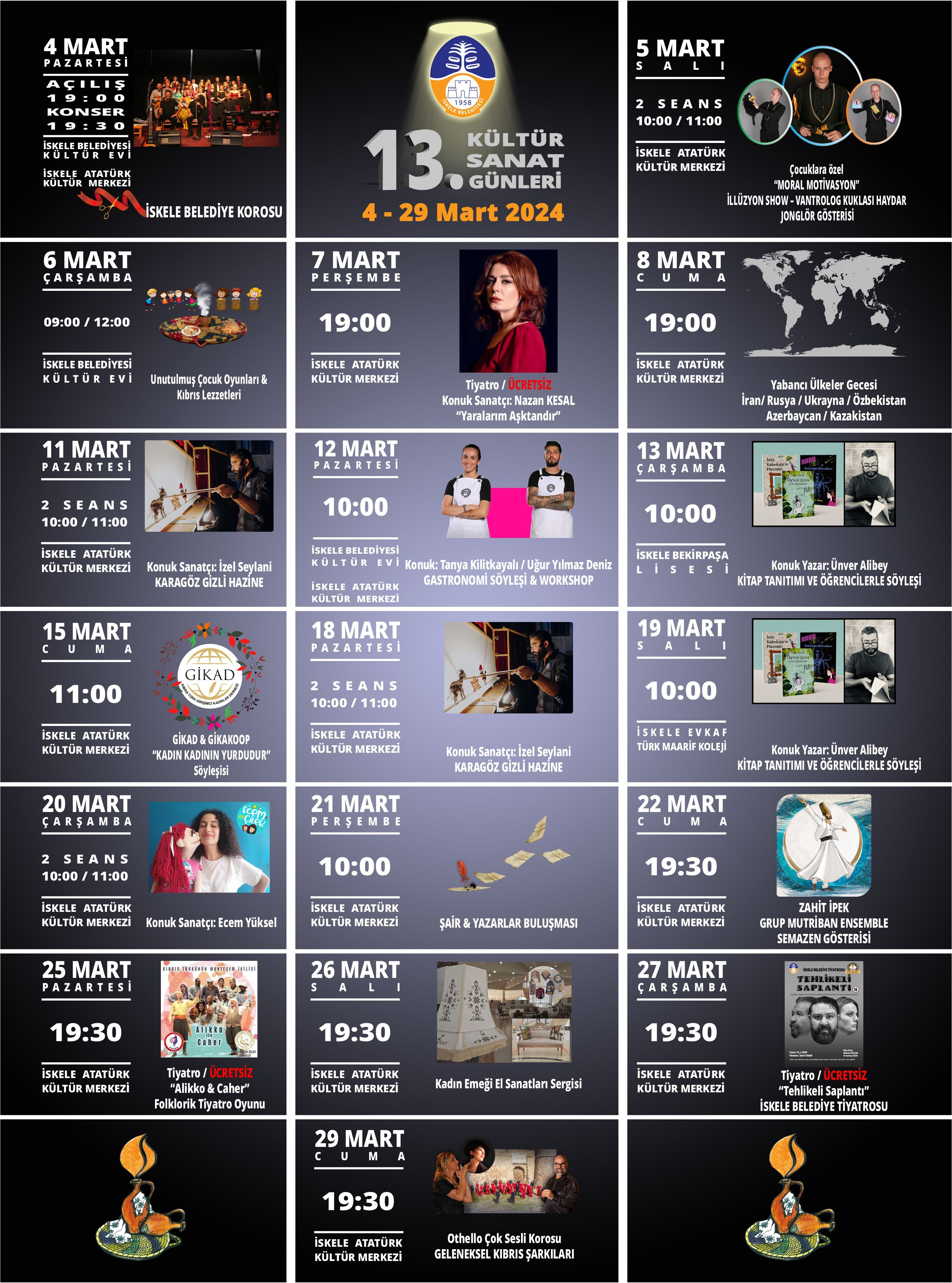 Lefkoşa, 23 Şubat 24 (TAK): İskele Belediyesi Kültür Sanat Günleri bu yıl 4 – 29 Mart tarihleri arasında gerçekleşecek.