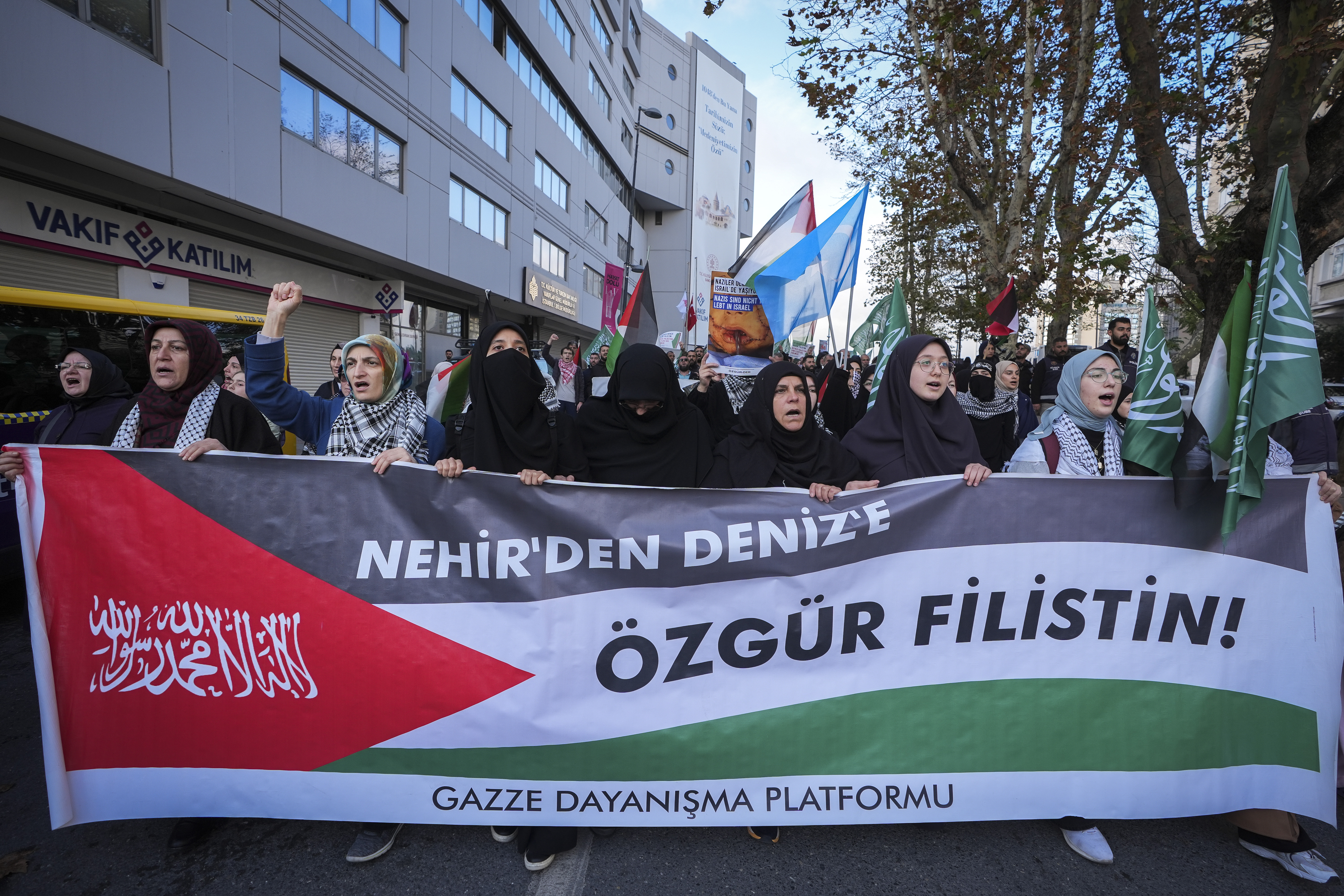 İstanbul, 11 Kasım 24 (TAK): Gazze Dayanışma Platformu gönüllüleri, İsrail'in Gazze'deki saldırılarını destekleyen Almanya'yı, Beyoğlu'ndaki İstanbul Başkonsolosluğu önünde protesto etti.