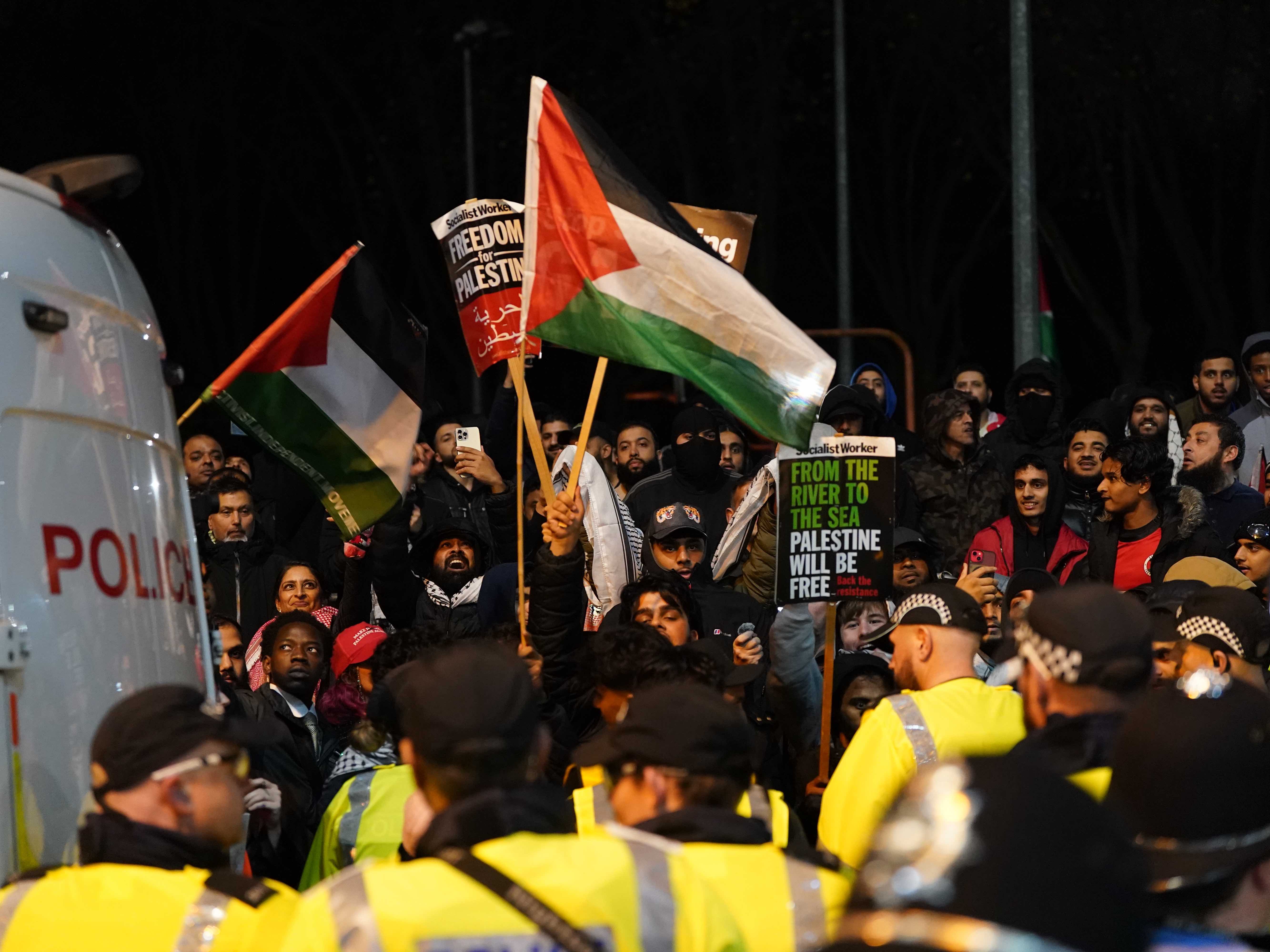 Londra, 7 Kasım 25 (TAK): UEFA Avrupa Ligi'ndeki Aston Villa-Maccabi Tel Aviv maçı öncesinde İsrail'in uluslararası futboldan men edilmesini isteyen binlerce kişi İngiltere'nin Birmingham kentinde protesto gösterisi düzenledi.