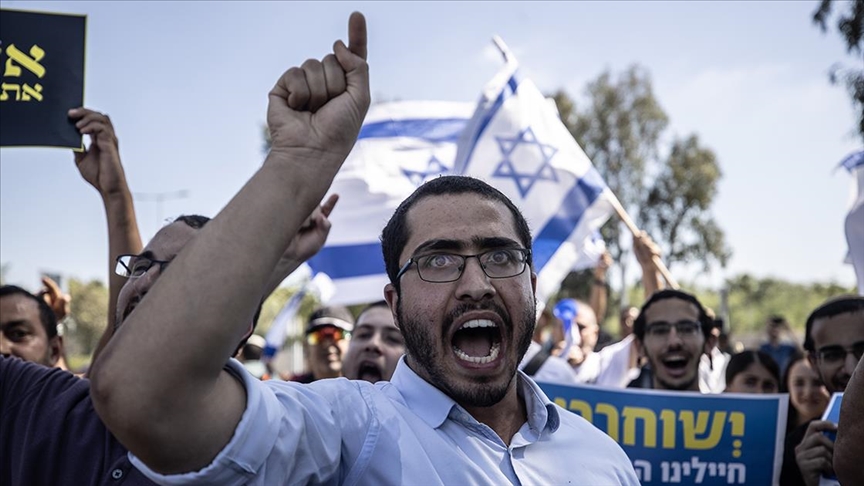 eden İsrailli askerlerin gözaltına alınmasını protesto eden siyonist grupların,