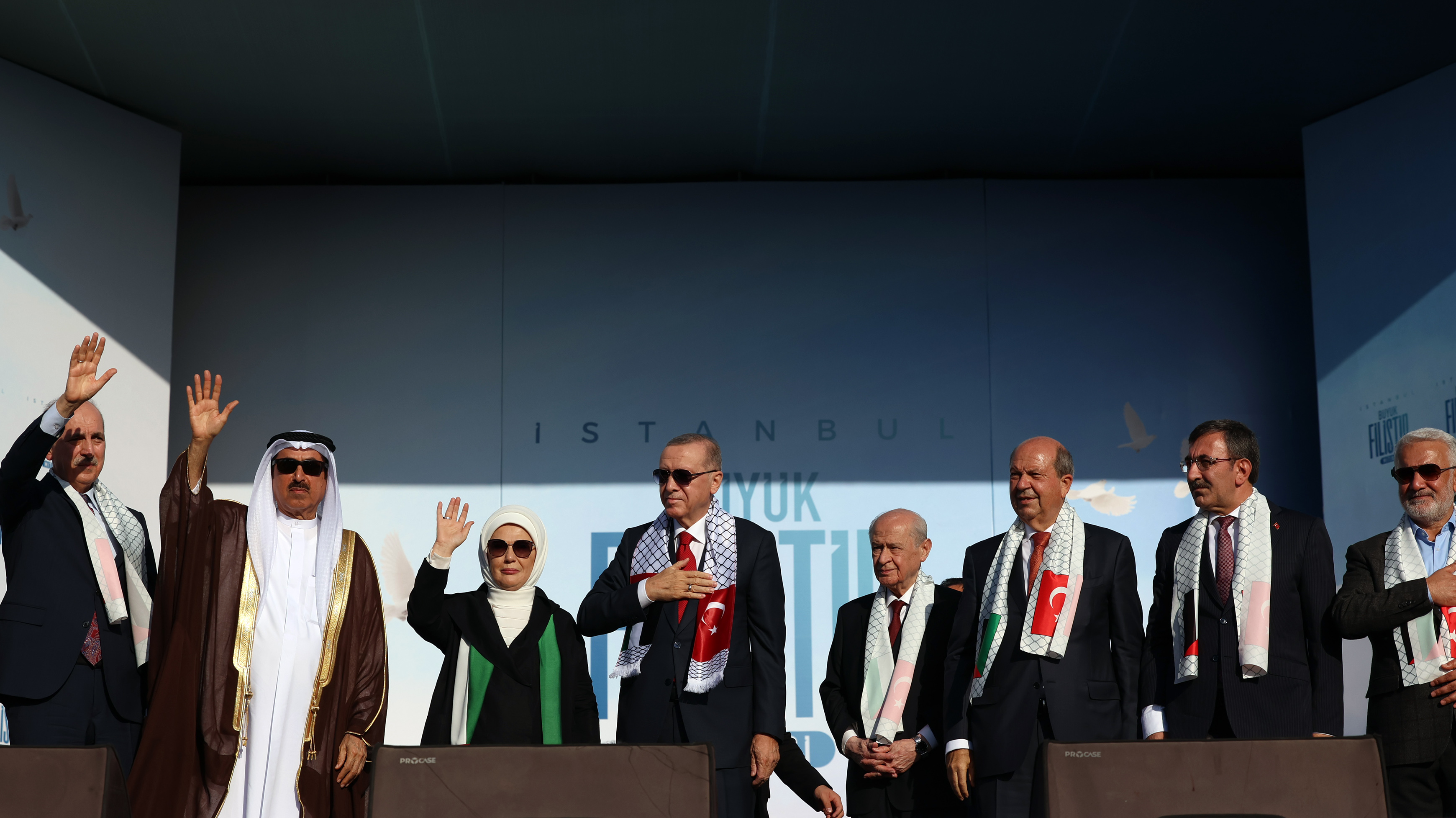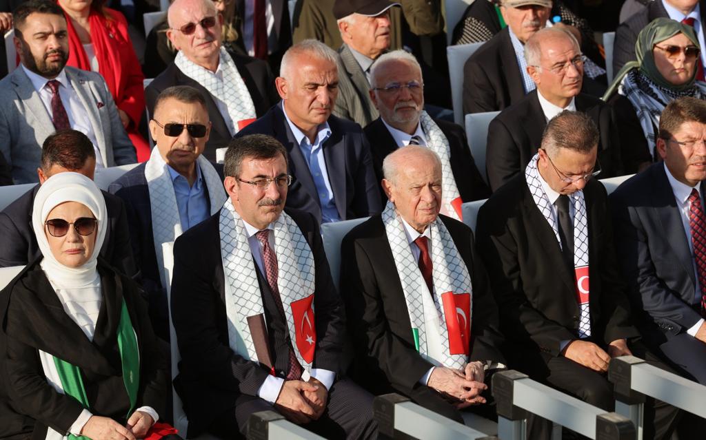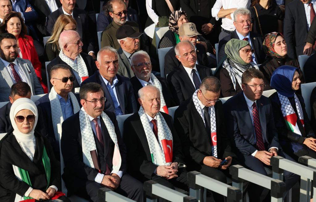 Lefkoşa, 28 Ekim 23 (TAK): İstanbul’da düzenlenen Büyük Filistin Mitingi’ne, Cumhurbaşkanı Ersin Tatar da katıldı.