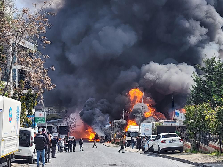 Kısa sürede depoyu saran yangın nedeniyle ara ara patlama sesleri duyuldu
