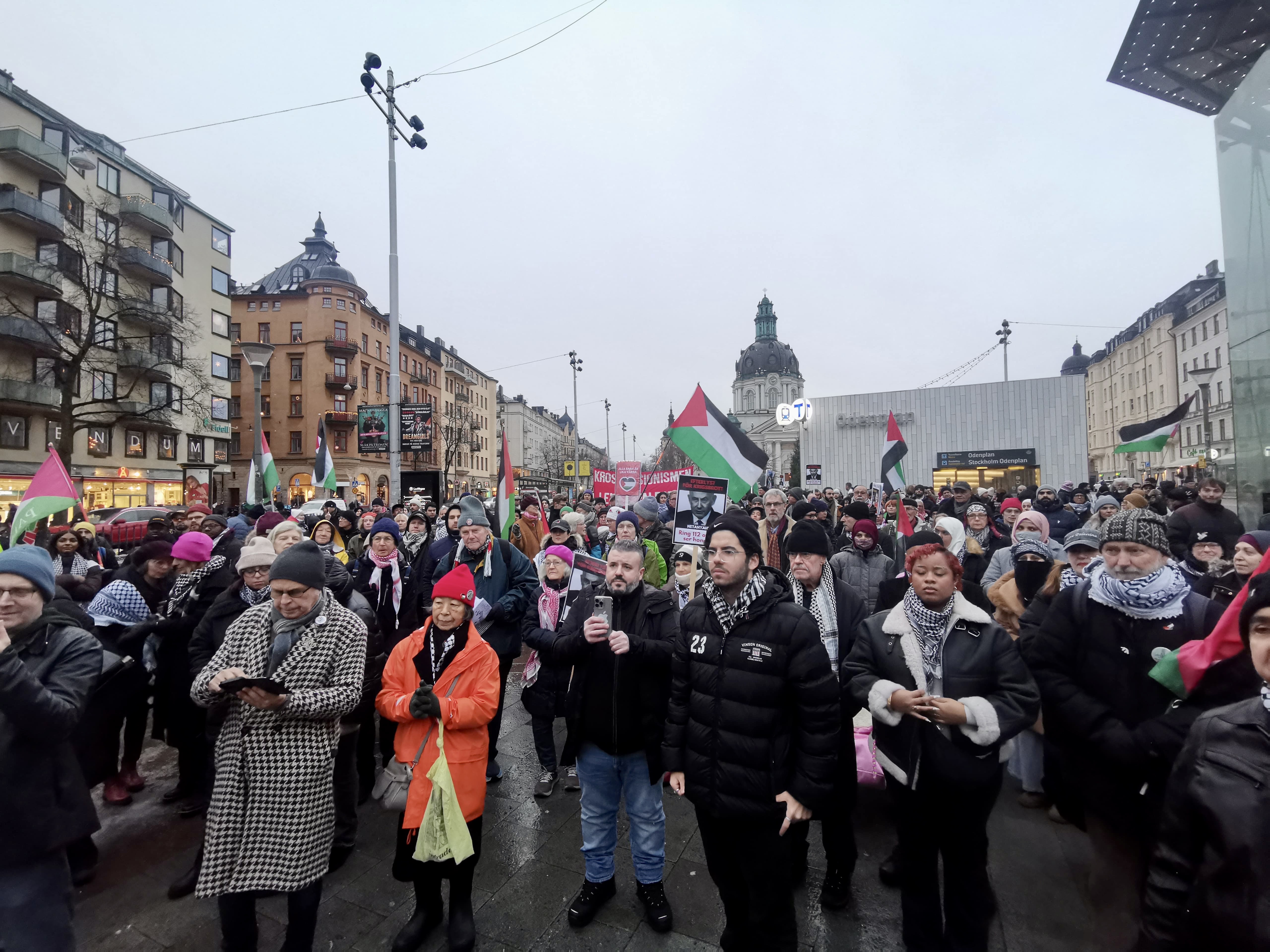 Stockholm'deki Odenplan bölgesinde Filistin'e destek amacıyla toplanan yüzlerce