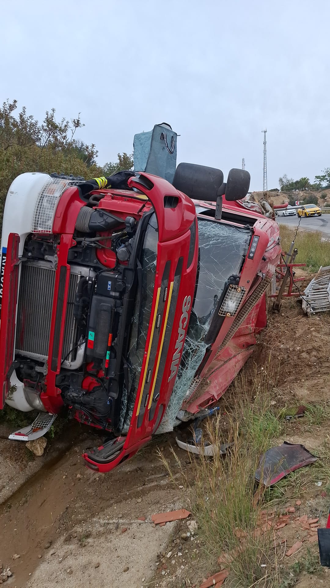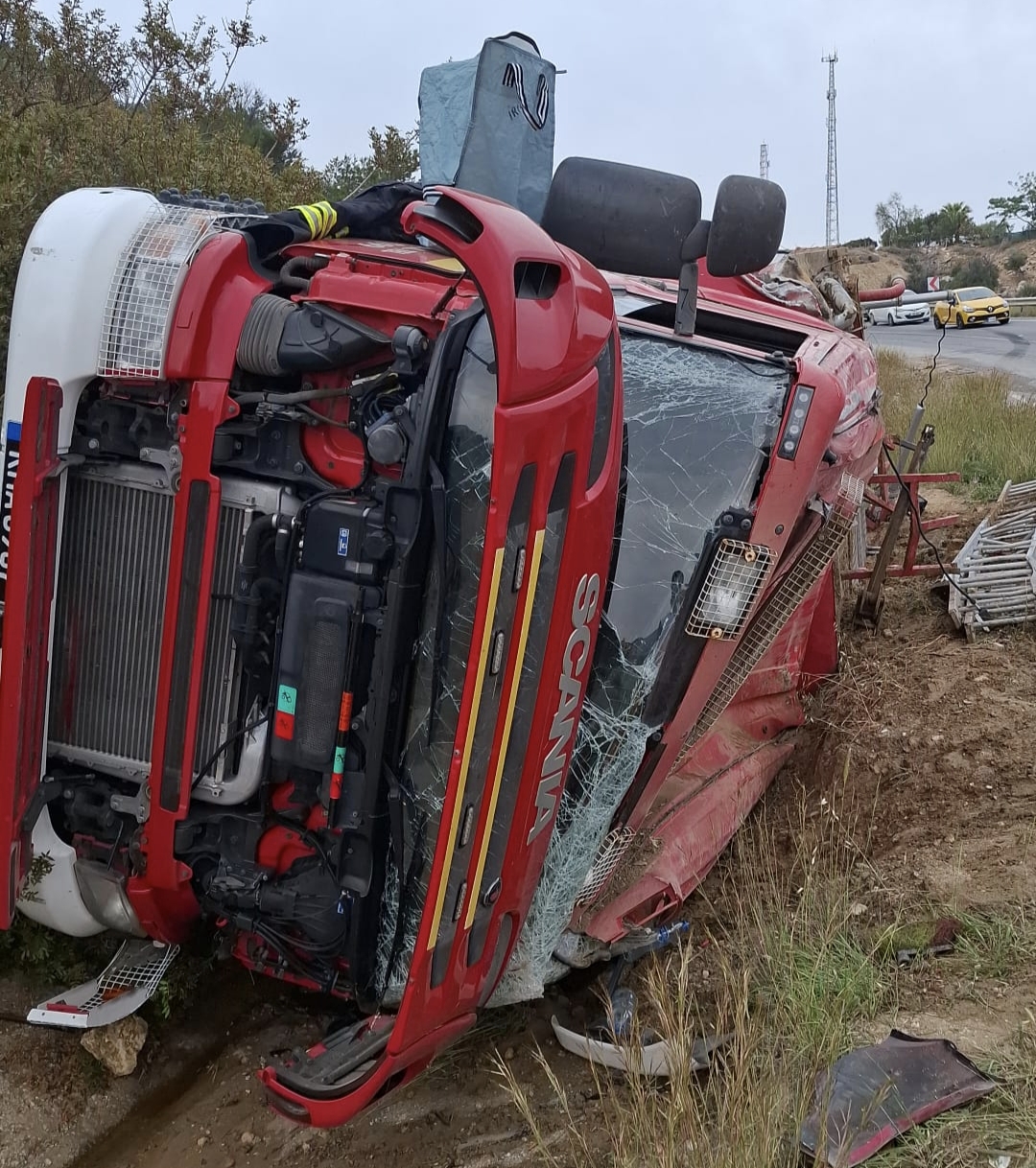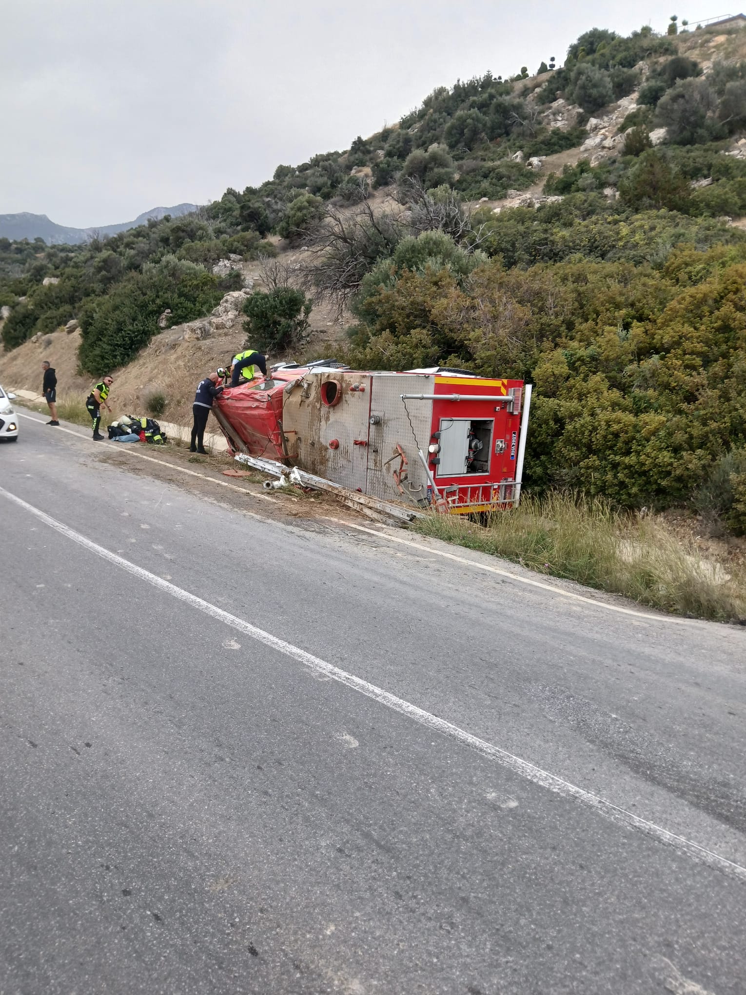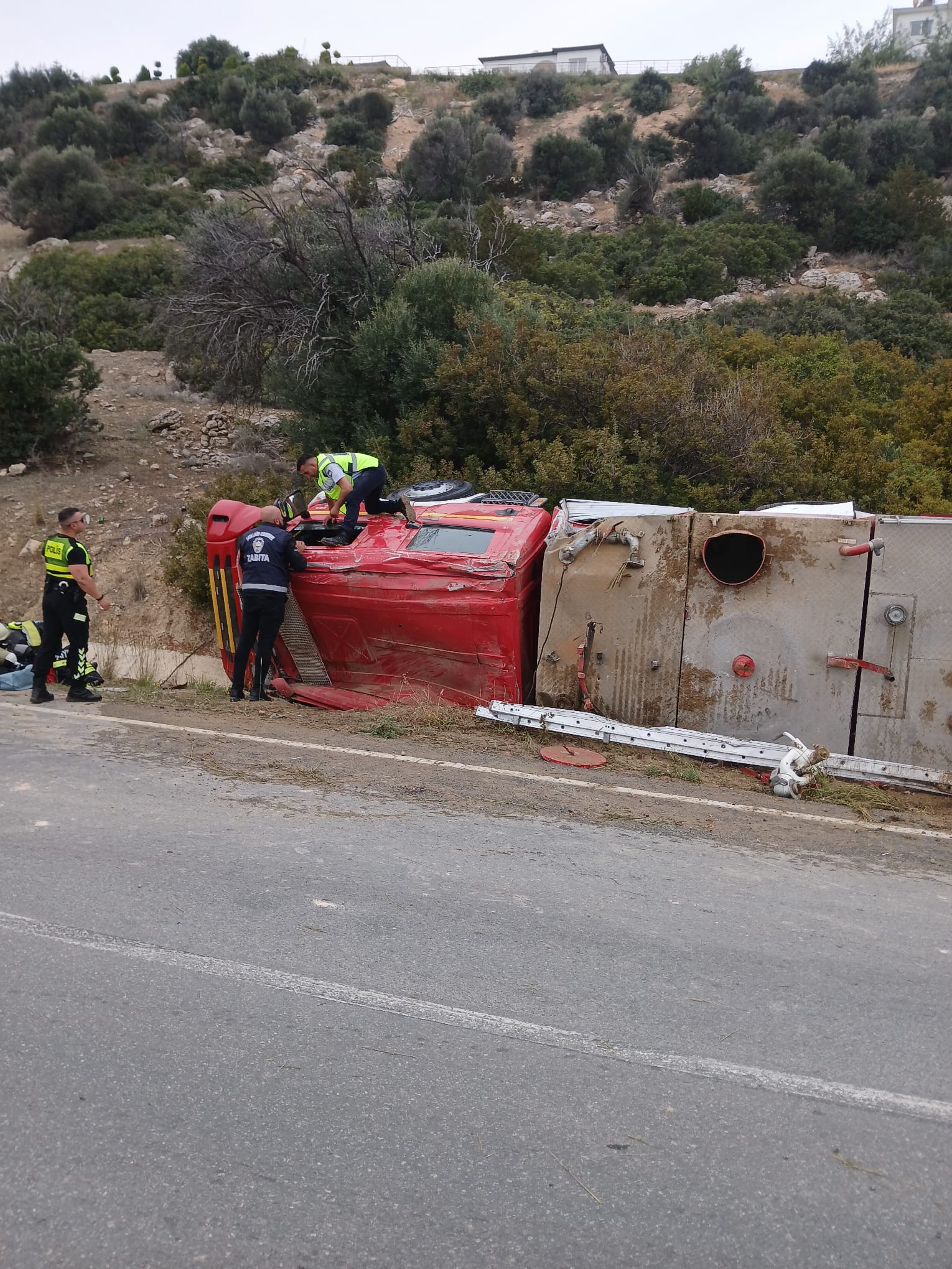 İtfaiye aracı yoldan çıkıp devrildi.. 2 yaralı