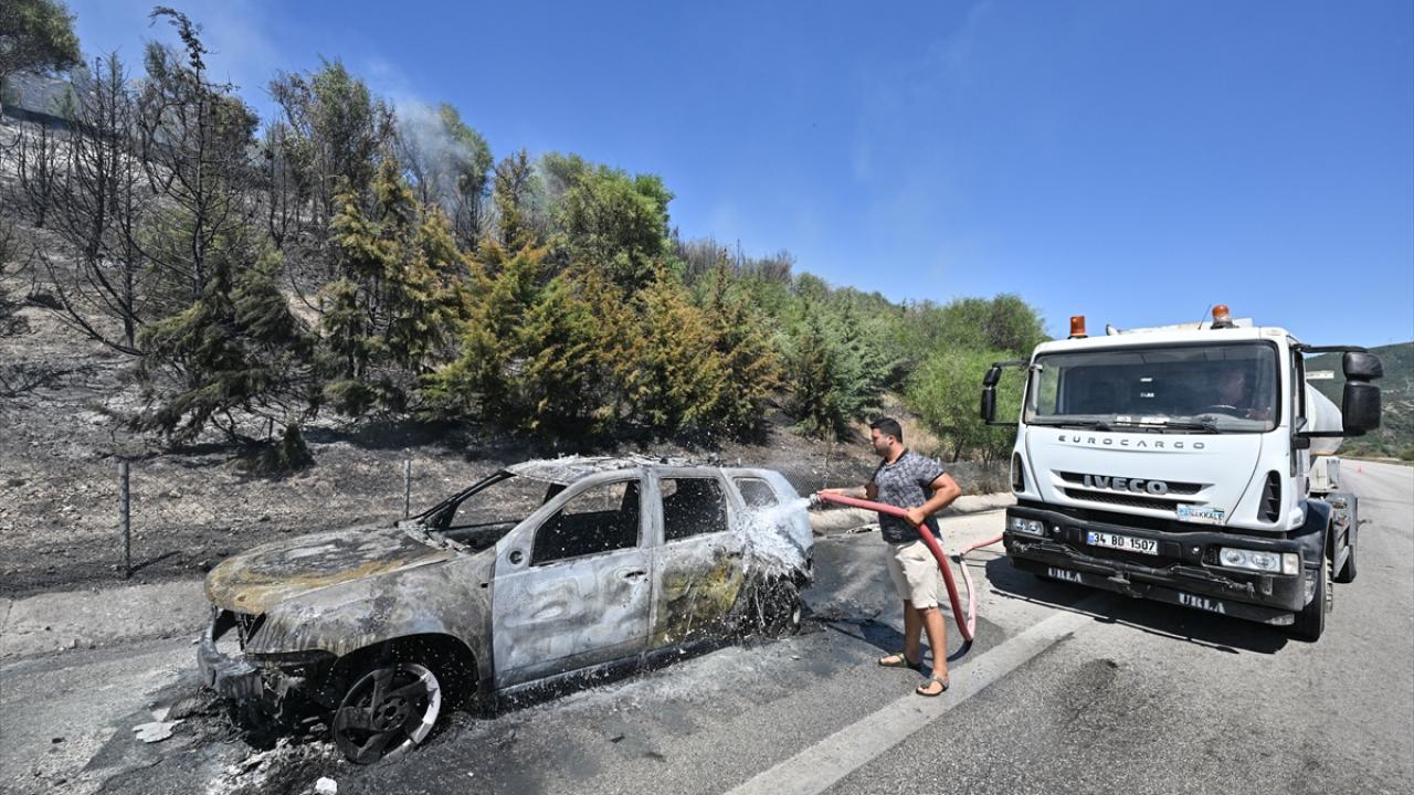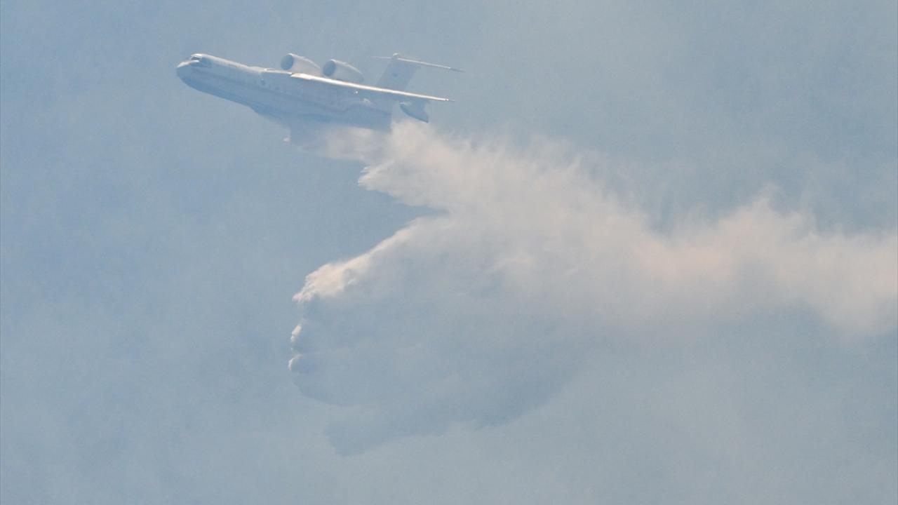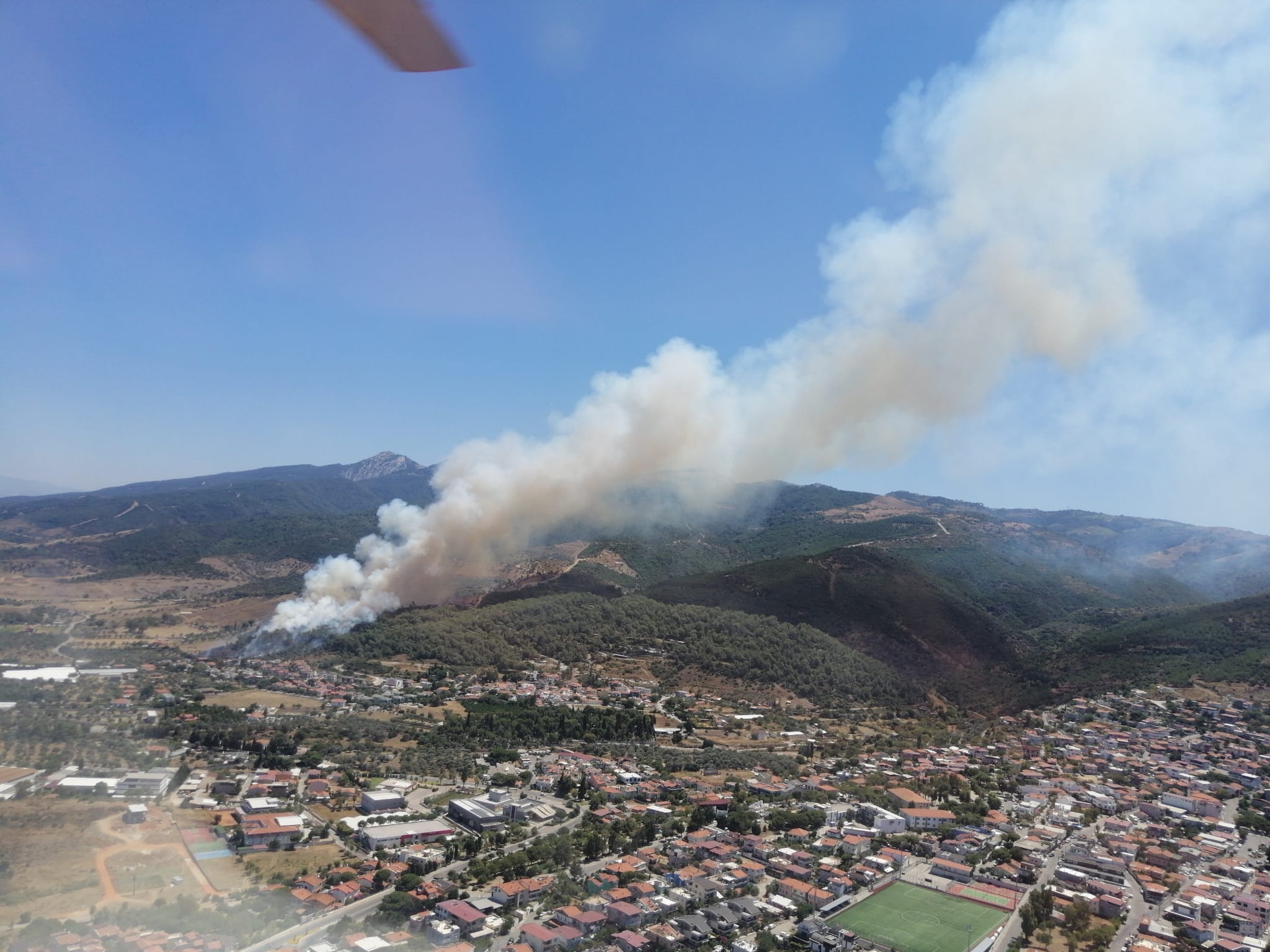 İzmir'in Güzelbahçe ilçesinde, yerleşim birimleri yakınında çıkan orman yangına da müdahale ediliyor
