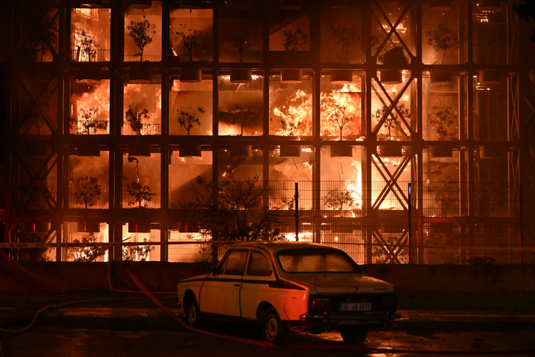 İzmir, 28 Nisan 23 (TAK): İzmir'in Narlıdere ilçesinde lüks bir sitedeki binada çıkan yangın, kontrol altına alındı.