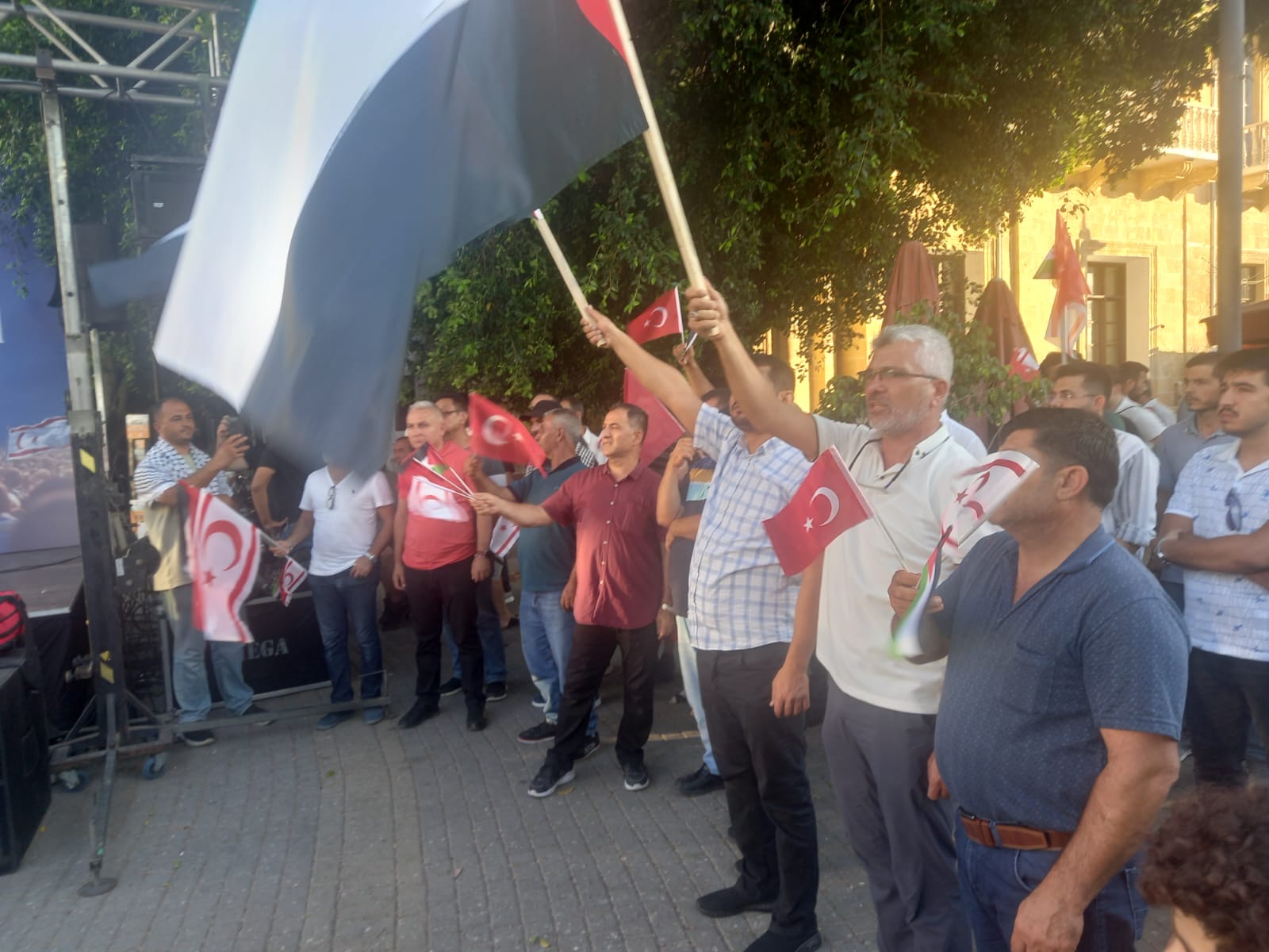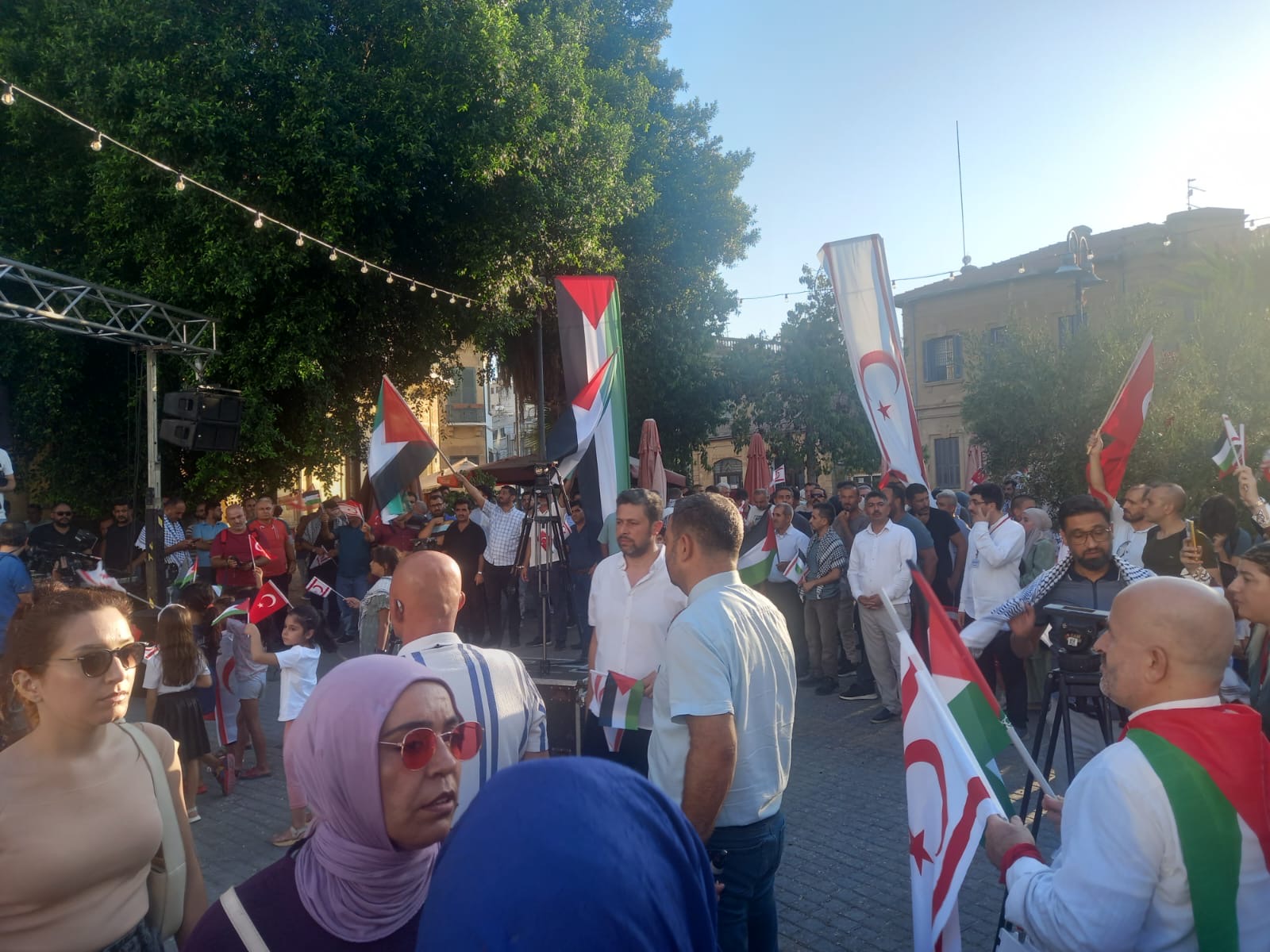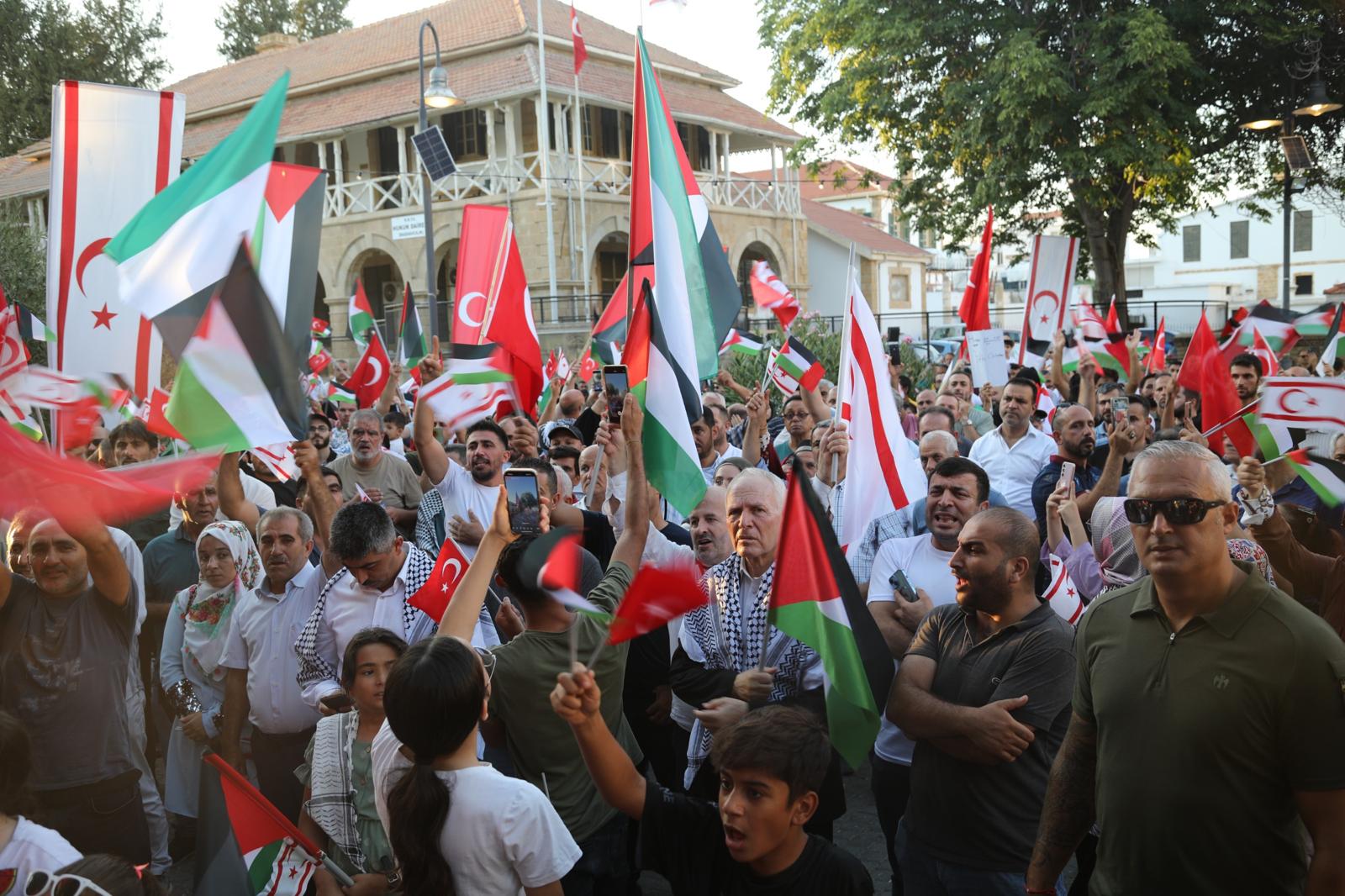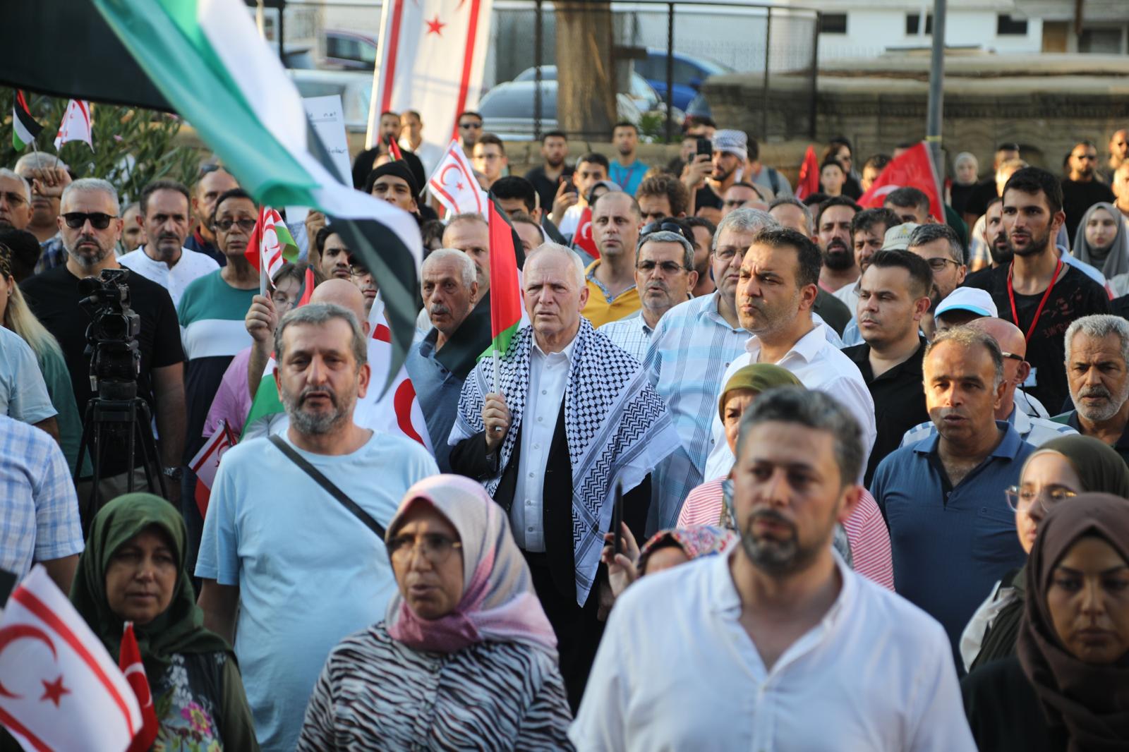 Lefkoşa, 3 Ağustos 24 (TAK): Kıbrıs Filistin İnisiyatifi, Lefkoşa Sarayönü’nde İsrail’in Gazze’de yürüttüğü “soykırımı” kınamak için miting düzenledi.