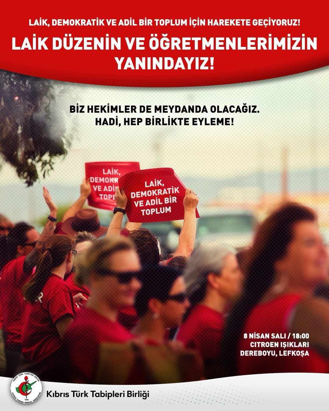 Lefkoşa, 7 Nisan 25 (TAK): Kıbrıs Türk Tabipleri Birliği (KTTB), hekimlerin yarın meydanda olacağını bildirdi.