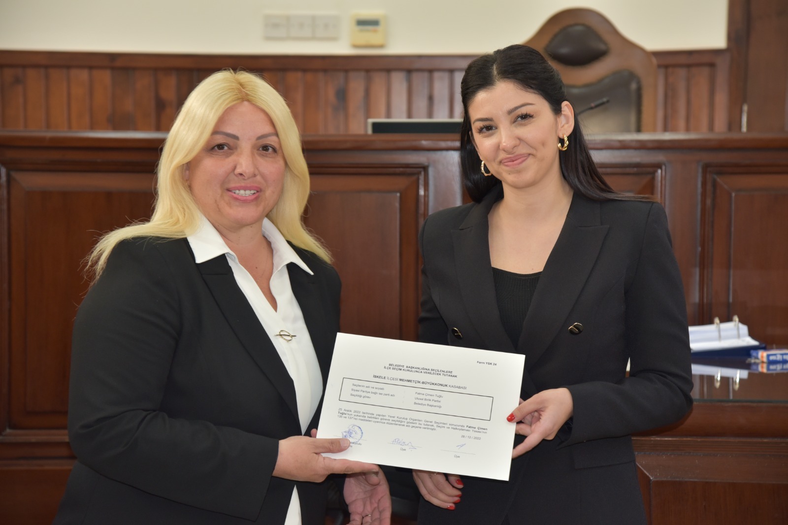 KKTC tarihinin ikinci kadın belediye başkanı Fatma Çimen Tuğlu mazbatasını alarak göreve başladı