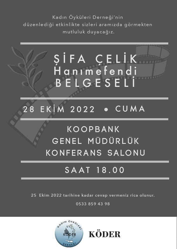 Şifa Çelik Belgeseli 28 Ekim Cuma günü gösterilecek