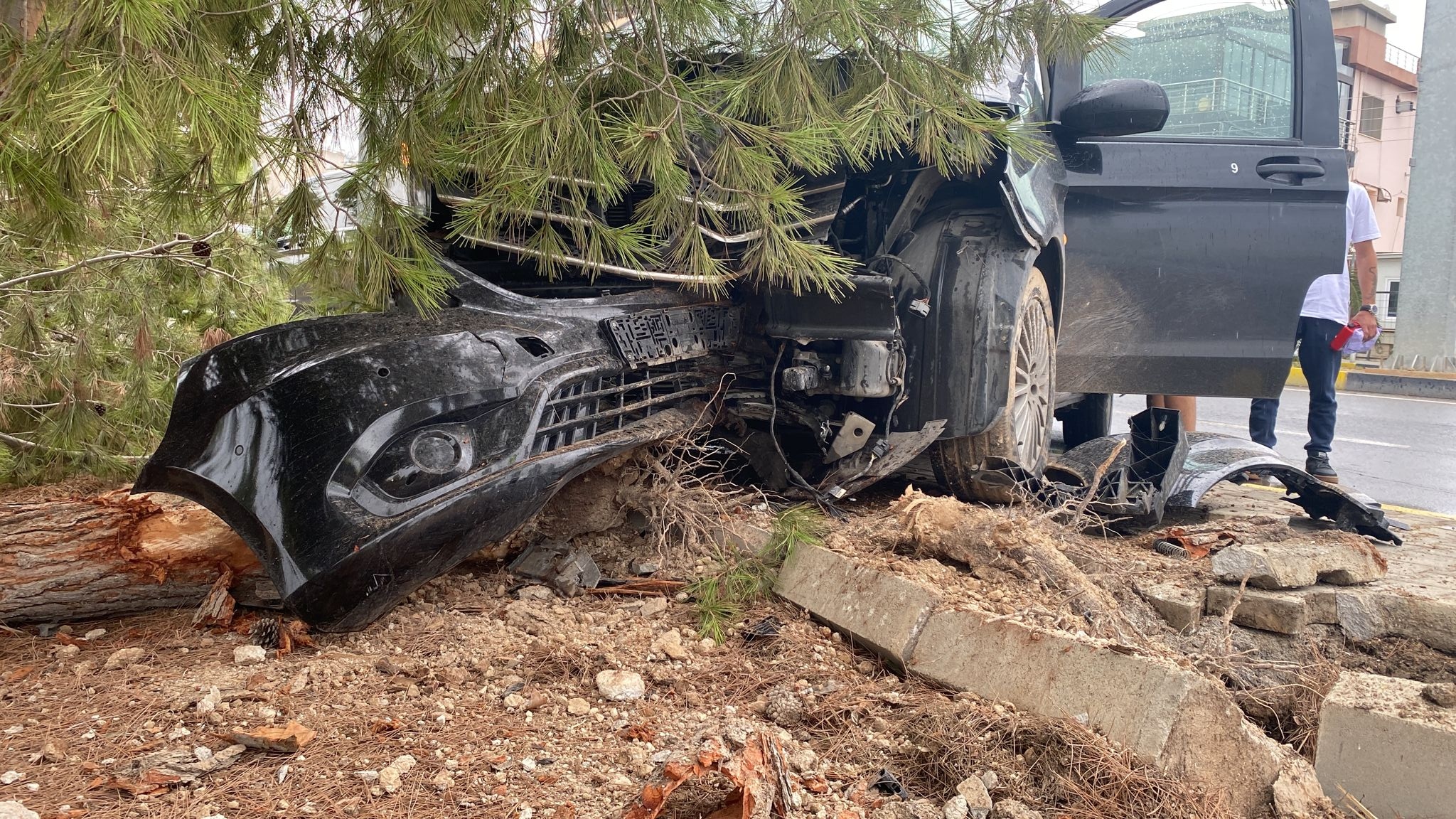 Lefkoşa, 16 Ekim 2022 (TAK): Lefkoşa'da Durmuş Özbengisu, yönetimindeki TRL 621 plakalı aracın kontrolünü kaybetmesi sonucu kaldırıma çıkıp, önce çam ağacına daha sonra da mobese direğine çarptıktan sonra durabildi.