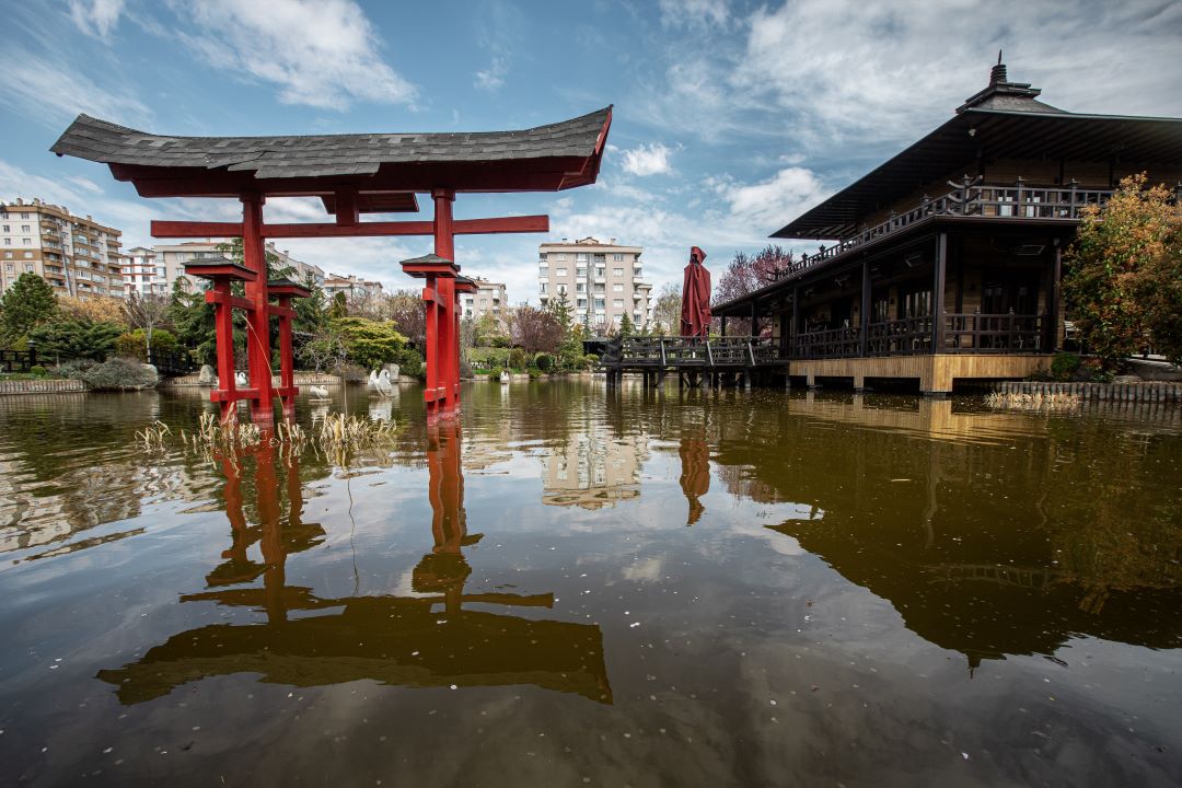yaptırılan 36 bin metrekarelik Japon Kyoto Parkı’nda, Japon mimarisinden