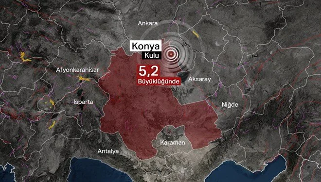 Afet ve Acil Durum Yönetimi Başkanlığının (AFAD) internet sitesinde yer alan bilgiye göre, merkez üssü Konya'nın Kulu ilçesi olan 5,2 büyüklüğünde sarsıntı kaydedildi.