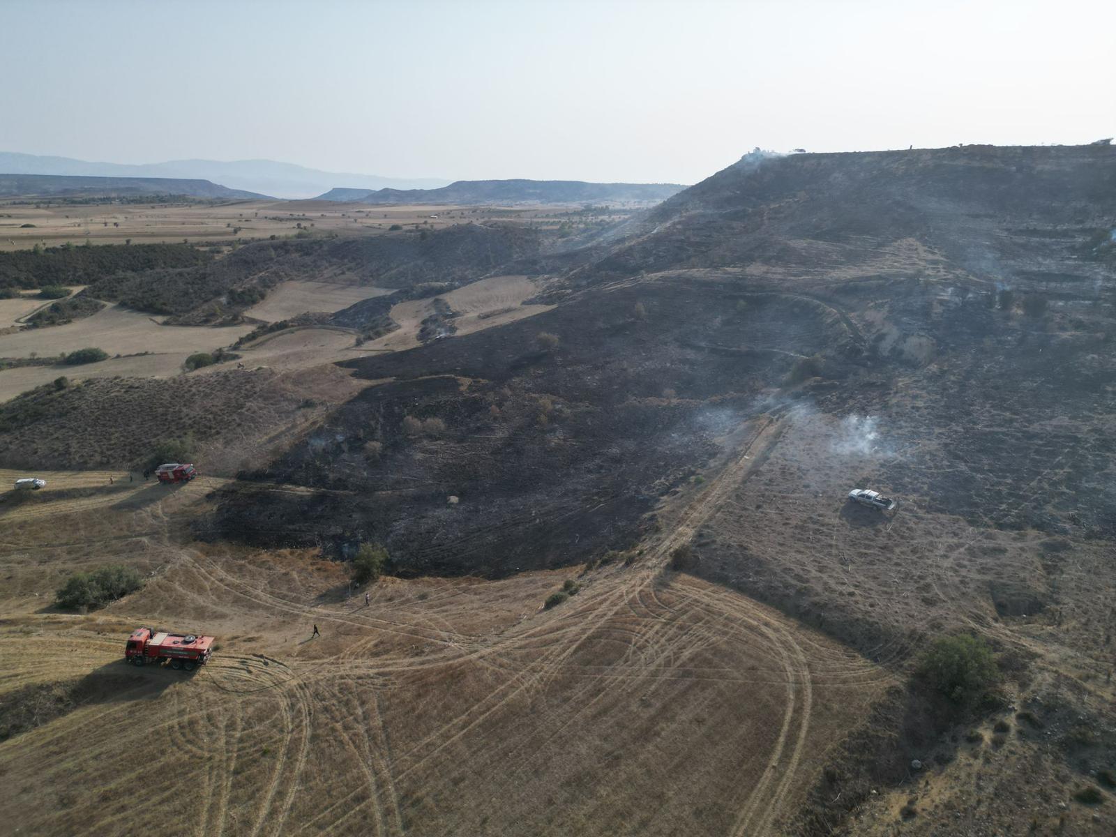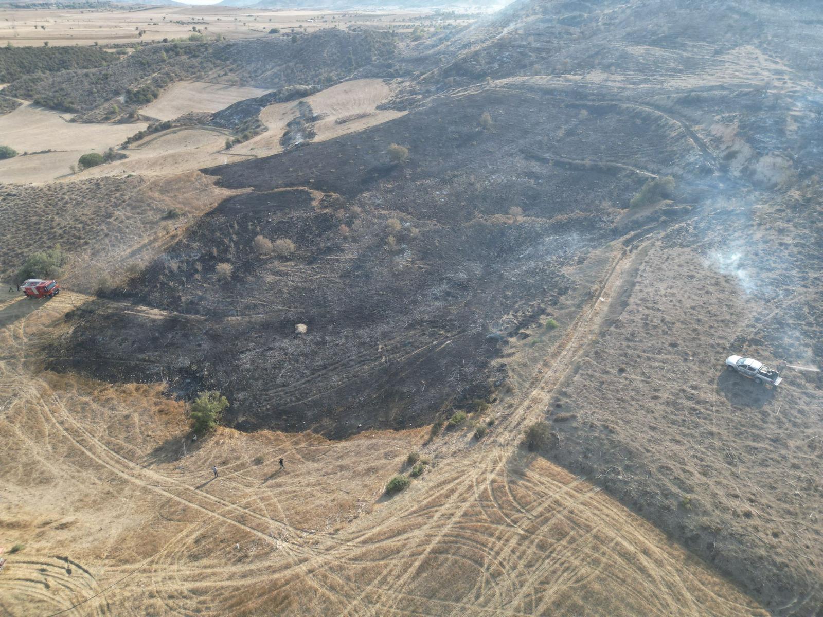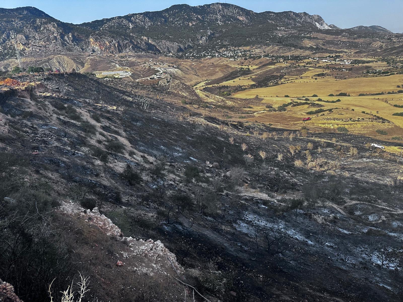 Lefkoşa, 13 Ağustos 25 (TAK): Kozanköy ile Hisarköy arasında bugün çıkan yangında yaklaşık 74 dönümlük alandaki makilik bitki örtüsü ve iki çam ağacı yandı.