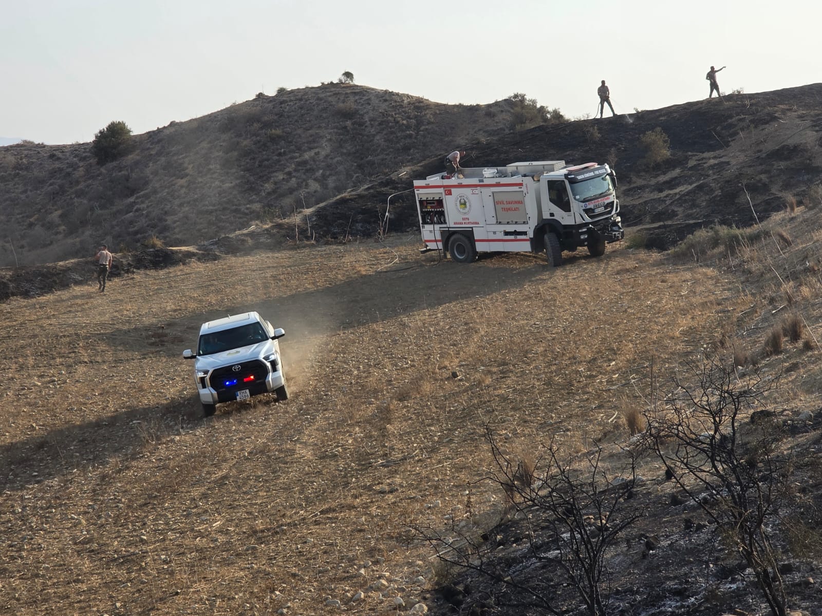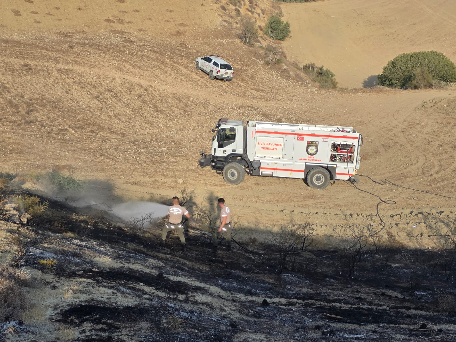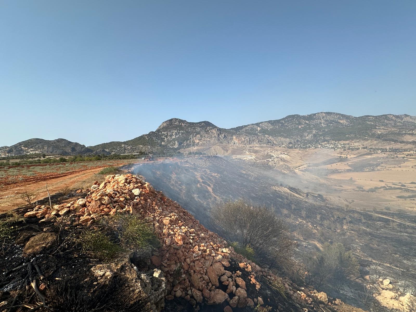 Lefkoşa, 13 Ağustos 25 (TAK): Kozanköy ile Hisarköy arasında bugün çıkan yangında yaklaşık 74 dönümlük alandaki makilik bitki örtüsü ve iki çam ağacı yandı.