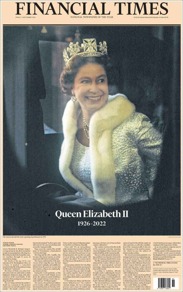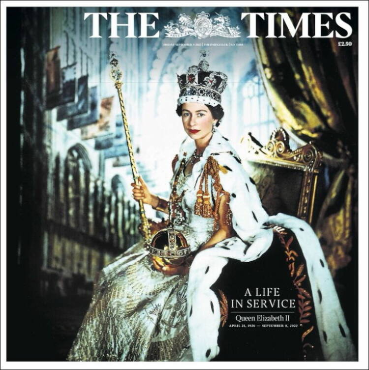 Londra, 9 Eylül 22 (TAK): Kraliçe 2. Elizabeth'in ölümünün ardından İngiliz gazeteleri, tarihe geçecek sayılarını hazırladı.