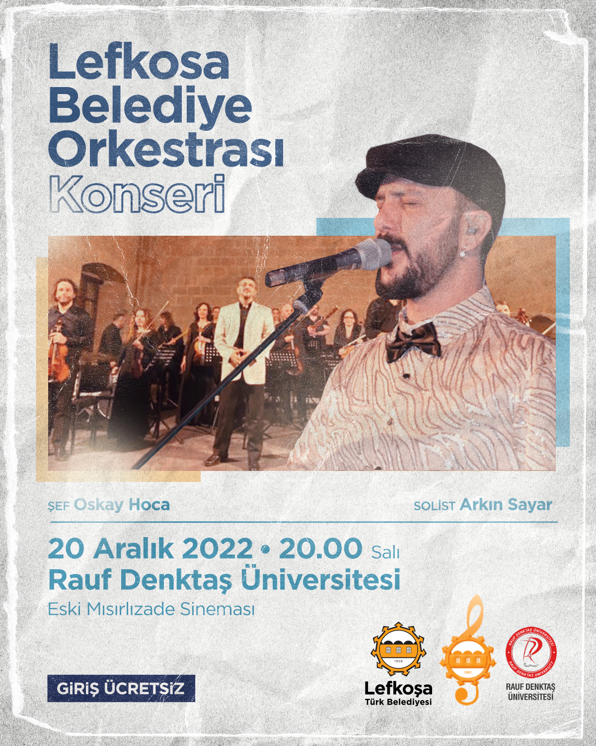 ücretsiz olacağı Rauf Denktaş Kültür Merkezi’ndeki (Eski Mısırlızade Sineması) konser