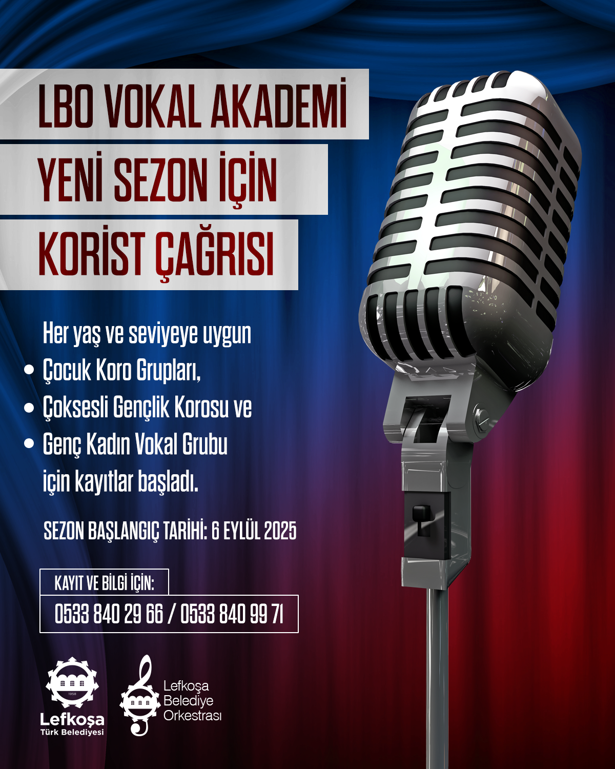veren herkesi 2025-26 sezonu için LBO Vokal Akademi’ye katılmaya davet etti.