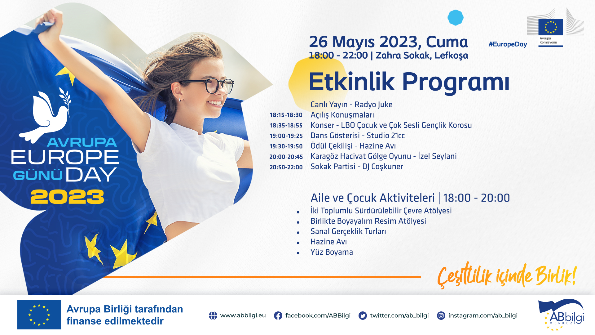 Lefkoşa, 25 Mayıs 23 (TAK): Avrupa Komisyonu’nun desteğiyle yarın Lefkoşa’da “2023 Avrupa Günü” etkinliği düzenlenecek.