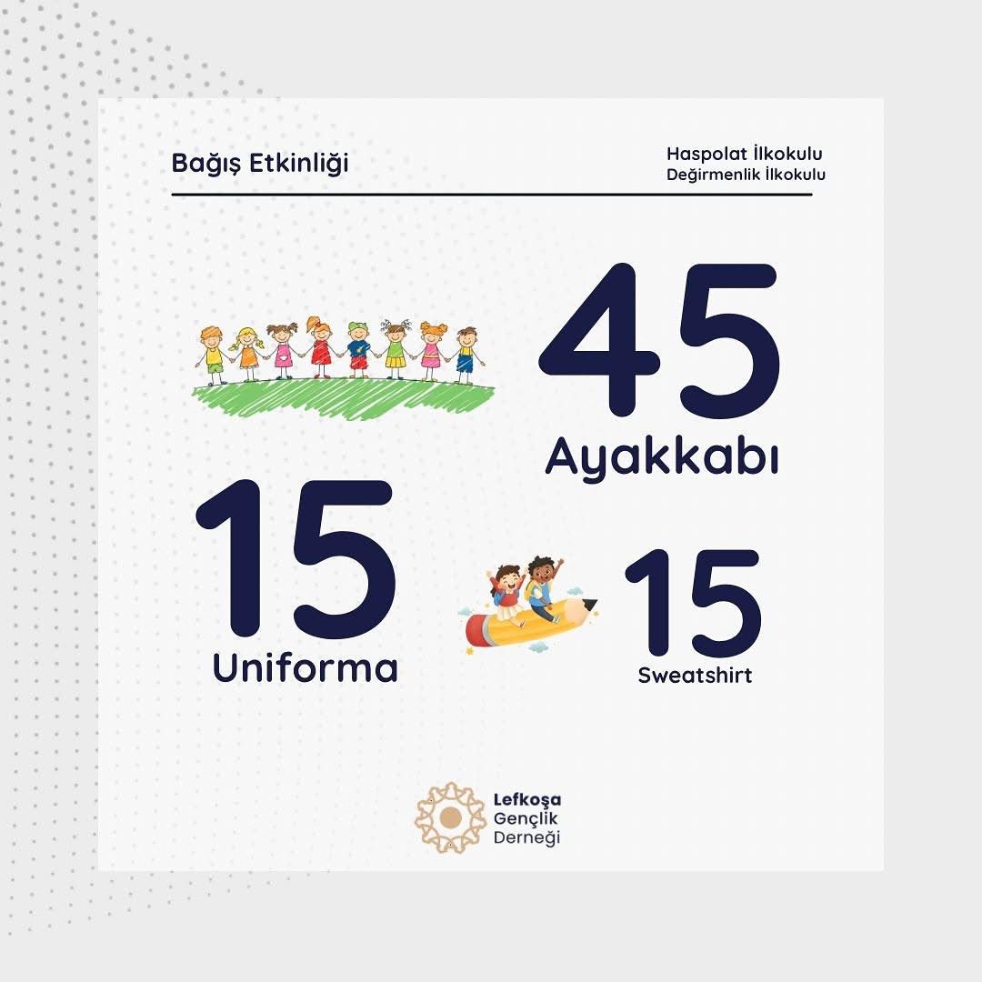 kapsamında Haspolat ve Değirmenlik ilkokullarına 45 çift ayakkabı, 15 okul üniforması