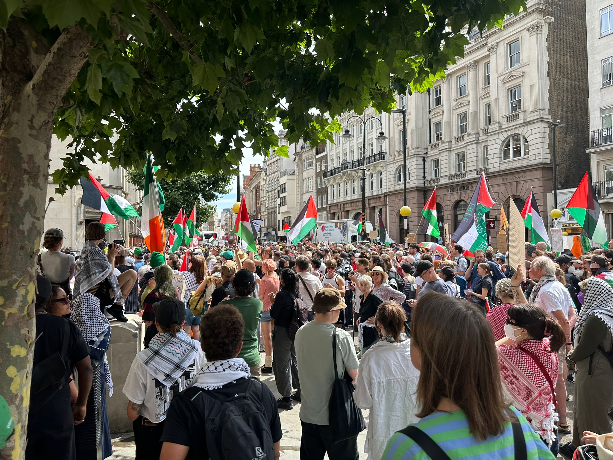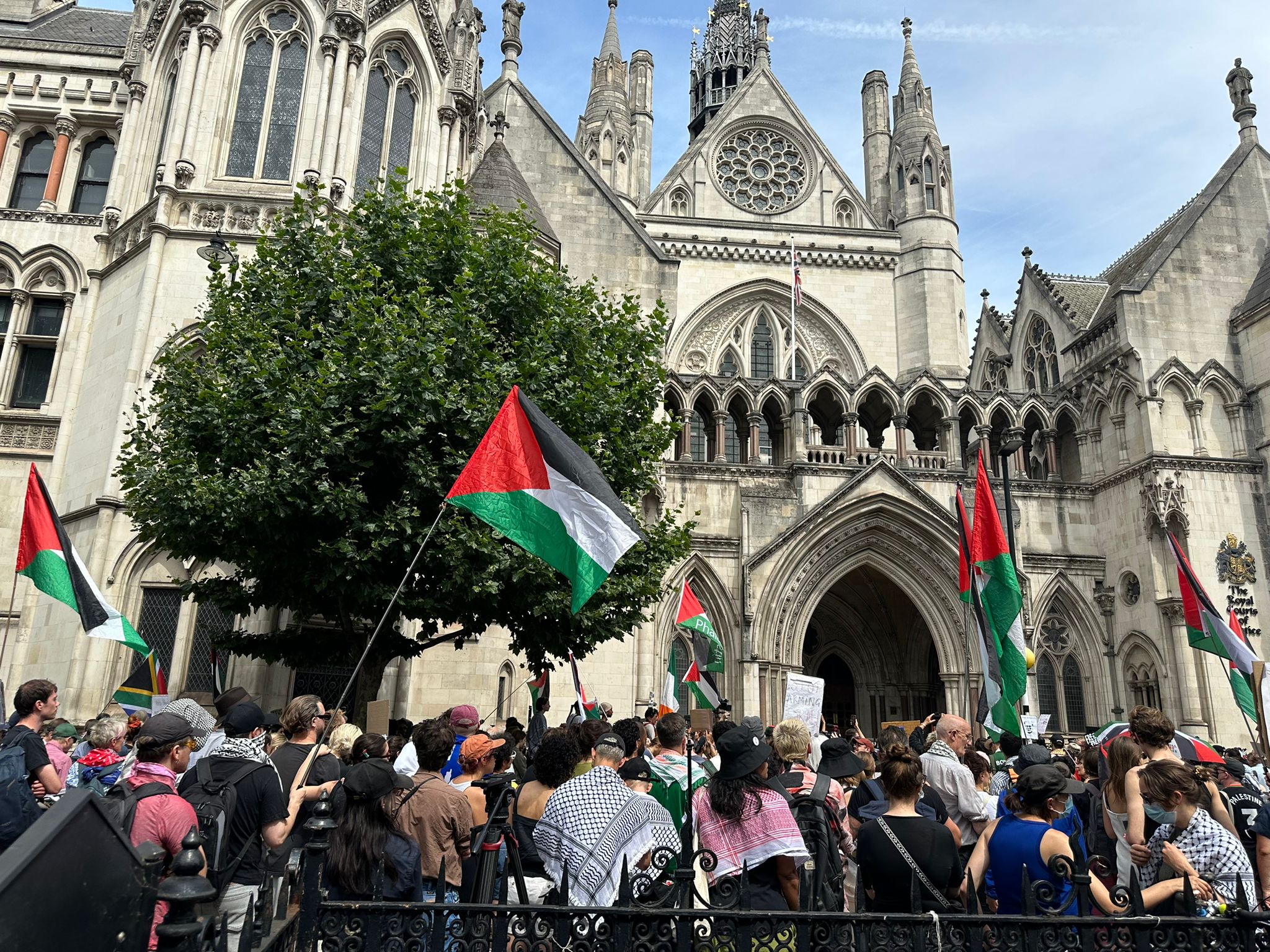 Londra, 4 Temmuz 25 (TAK): İngiltere'de İsrail'le iş yapan firmalara yönelik eylemleriyle tanınan "Palestine Action" grubunun hükümet tarafından terör örgütü ilan edilmesi girişimlerine karşı açılan davanın duruşması sırasında mahkeme binası önünde gruba destek eylemi düzenlendi.