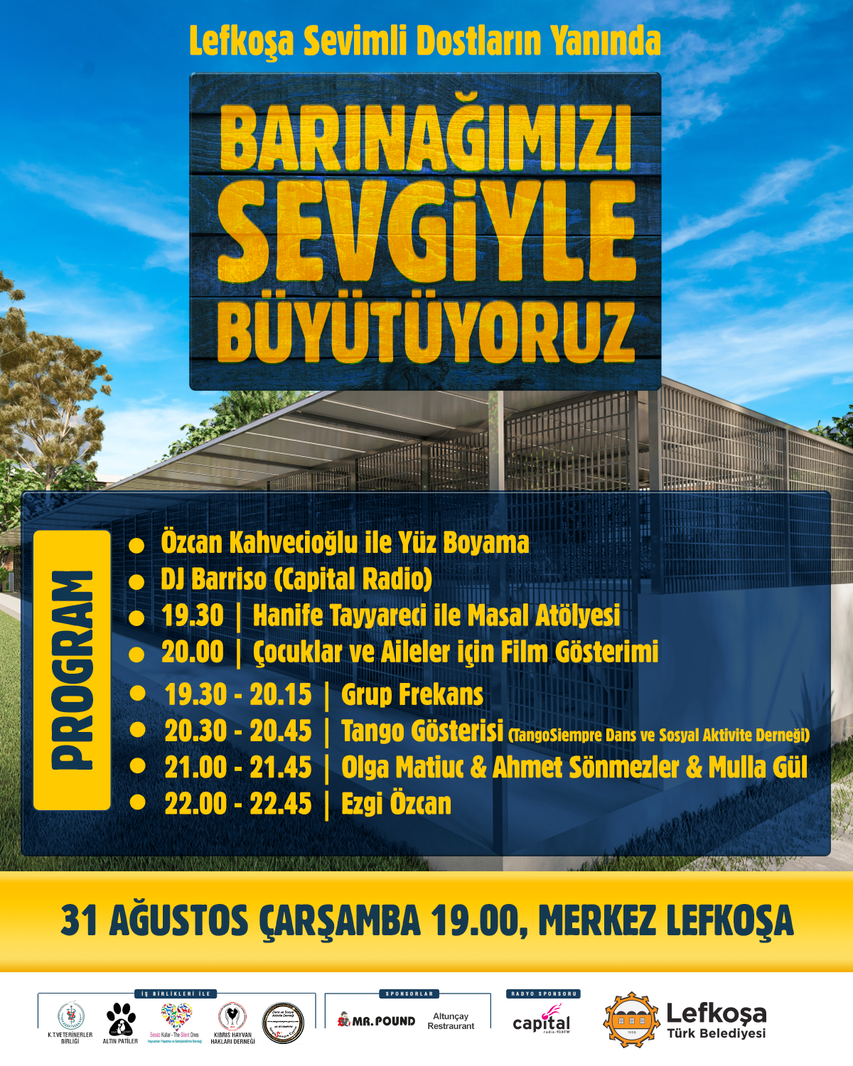 Lefkoşa, 30 Ağustos 22 (TAK): Lefkoşa Türk Belediyesi (LTB) tarafından yarın “Lefkoşa Sevimli Dostlarının Yanında: Barınağımızı Sevgiyle Büyütüyoruz” etkinliği düzenleniyor.