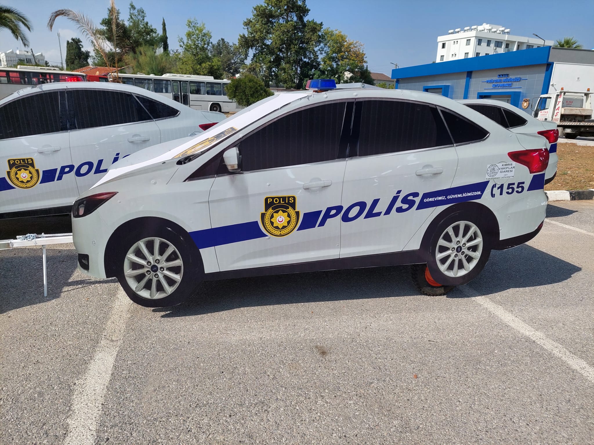 uyandırmak amacıyla tüm ilçelerde yol kenarlarına maket polis araçları