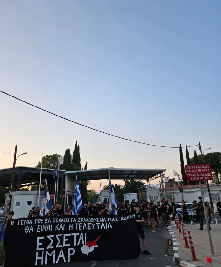 yıldönümü sebebiyle bazı Rum öğrenci birliklerinin Metehan (Ayios Demetios) Sınır Kapısı'nın Güney Kıbrıs