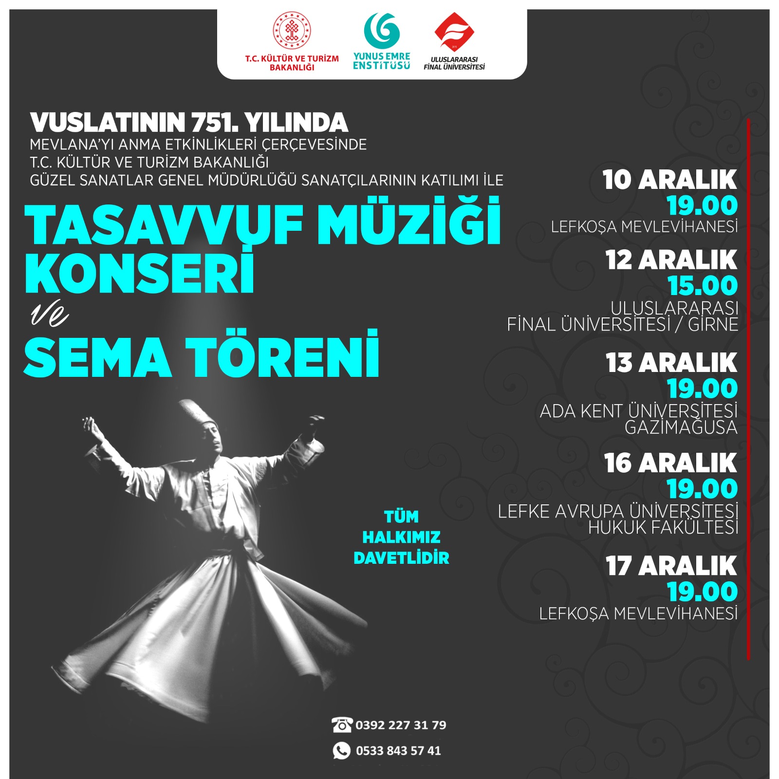 Lefkoşa, 9 Aralık 24 (TAK): Mevlânâ Celâleddîn-i Rûmî’nin