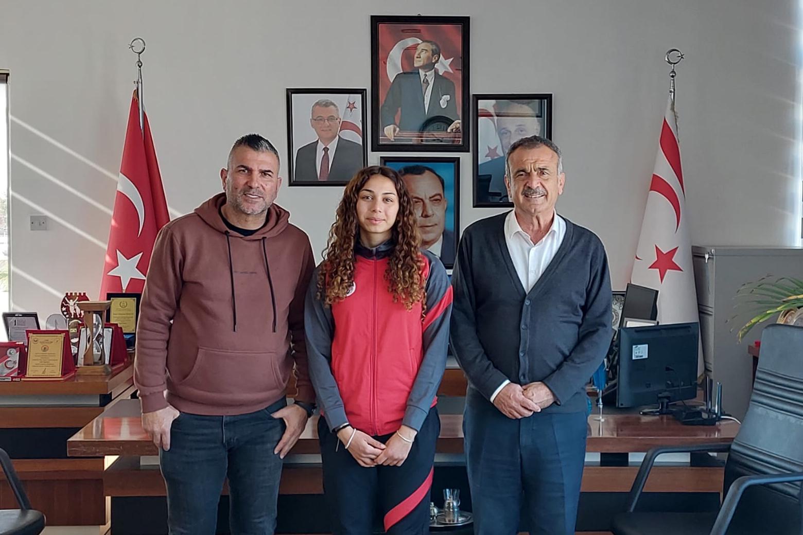 Lefkoşa, 12 Mart 26 (TAK): Gazimağusalı milli atlet Ada Kafa, antrenörü Hasan Maydon ile birlikte Gazimağusa Belediye Başkanı Süleyman Uluçay’ı ziyaret etti.