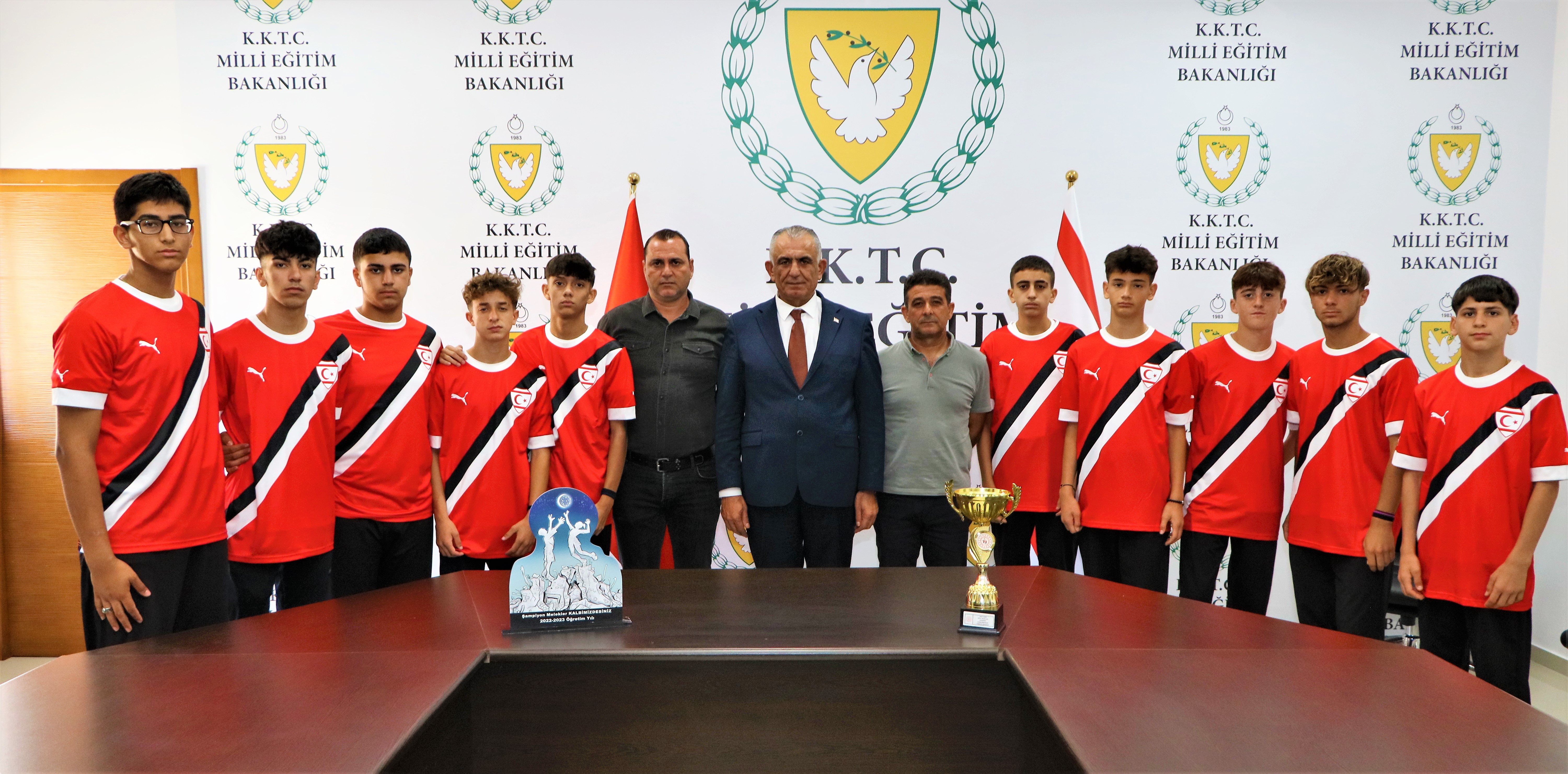 Erkek Atletizm Takımı öğrencilerini, öğretmenlerini ve okul müdürünü kabul