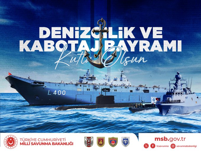 Ankara, 1 Temmuz 24 (TAK): Türkiye Milli Savunma Bakanlığı (MSB), "1 Temmuz Denizcilik ve Kabotaj Bayramı" dolayısıyla mesaj yayımladı.